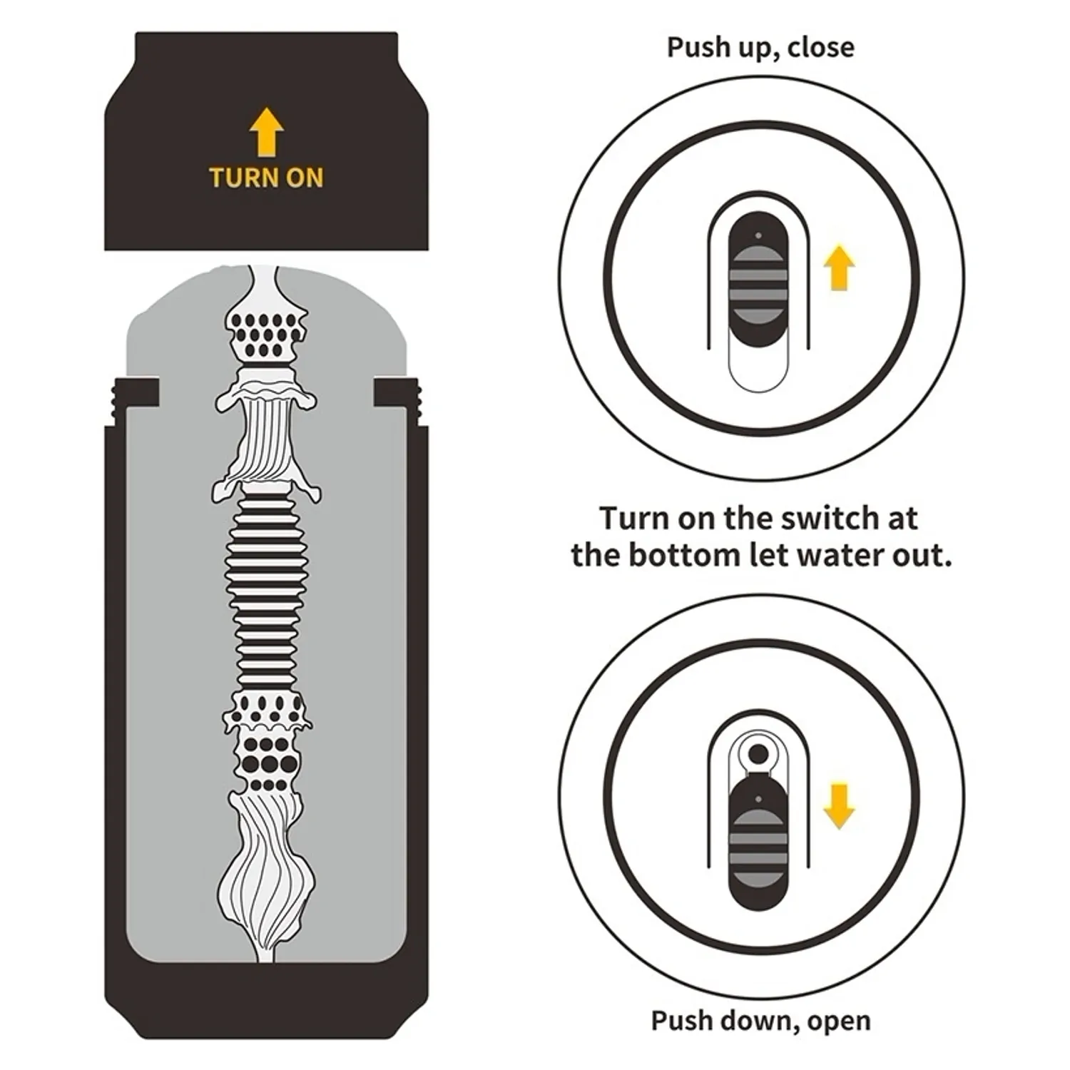 - Textură internă: ridicături, nodule şi inele pentru stimulare progresivă