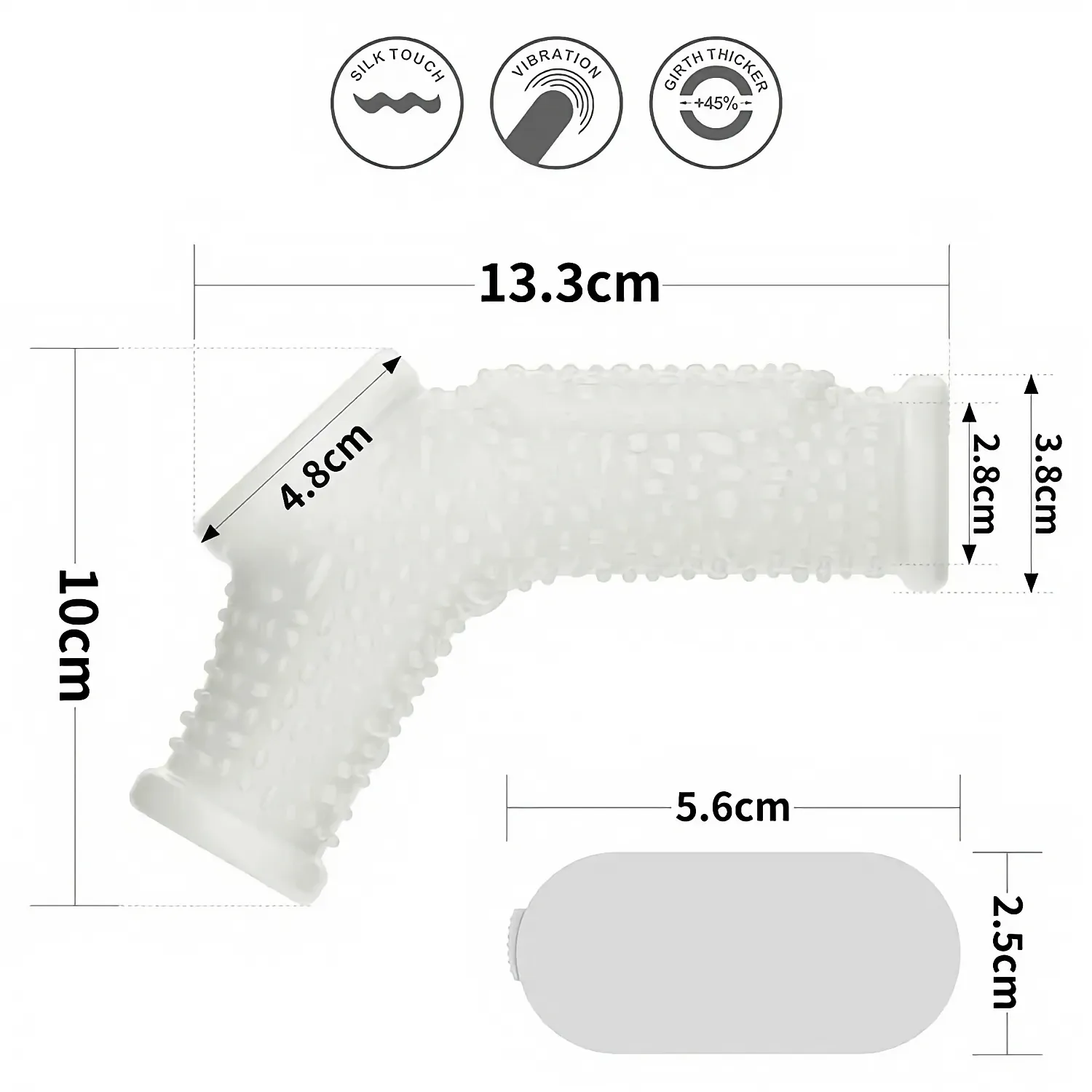 Beneficii și atribute: - Extinde circumferința cu până la +45% - Manșon elastic pentru mădular și inel de susținere - Material: TPE sigur pentru corp, fără latex și ftalați - Rezistent la apă pentru utilizare și curățare facilă - Vibrație integrată pentru stimulare discretă - Include 1 baterie CR2032 pentru pornire imediată - Reutilizabil, durabil și elastic, proiectat pentru confort
