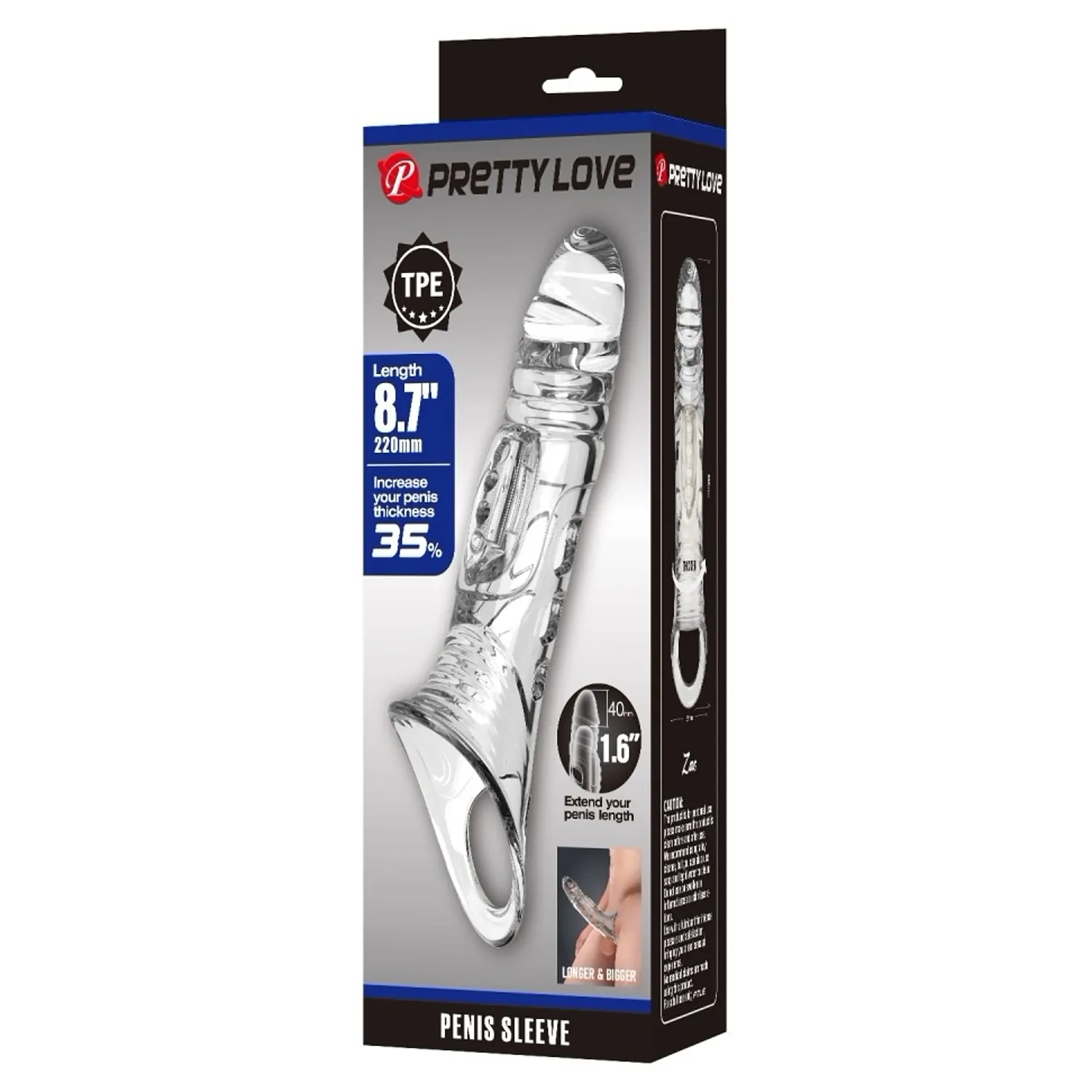 Un manson realist din TPE de la Pretty Love, realizat pentru a adăuga lungime și grosime. Capul pronunțat imită conturul natural, iar cureaua pentru scrot menține piesa fixă și stabilă în momentul utilizării.
