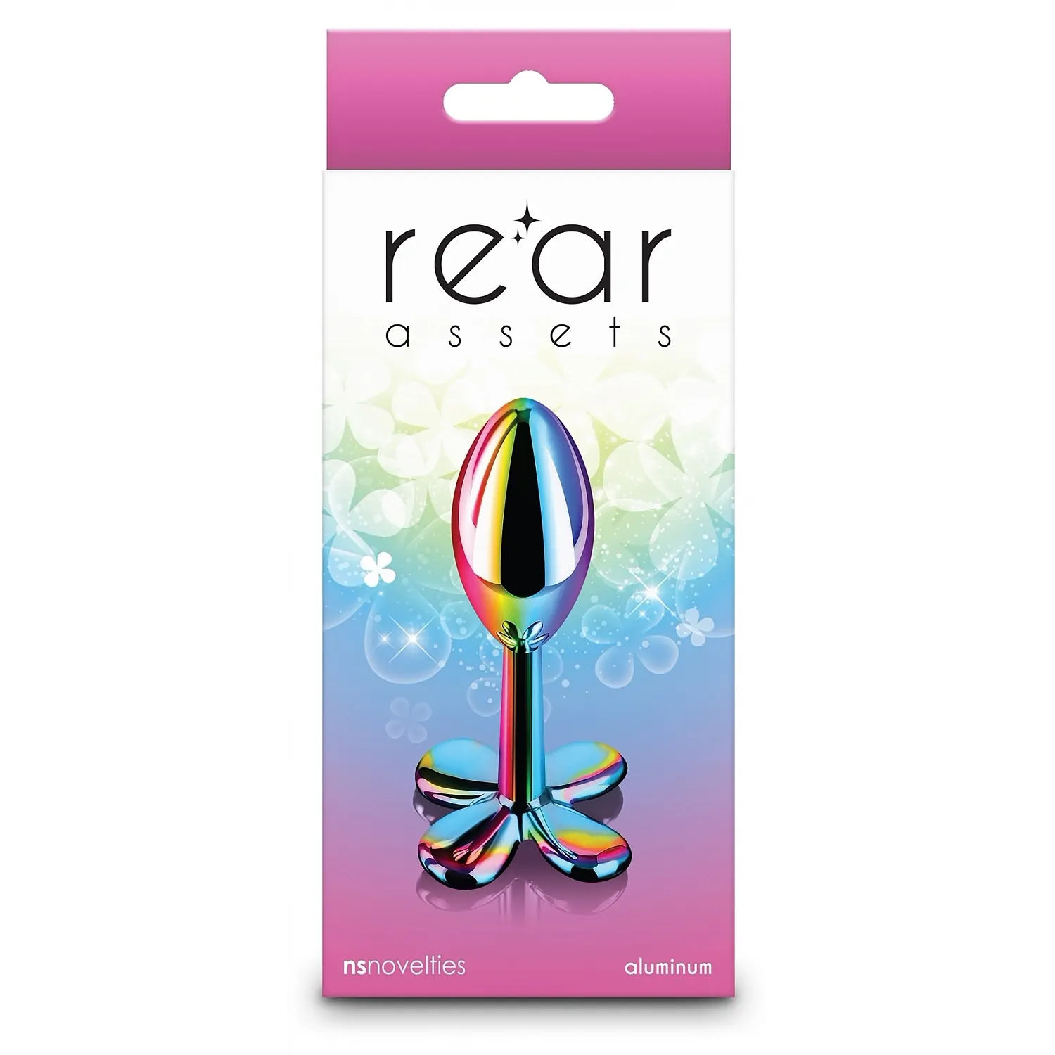 Dop anal metalic NS Clover, finisaj cromat multicolor. Bază în formă de trifoi cu 4 foi, design compact și ușor, sigur pentru corp. Aluminiu neted, compatibil cu orice lubrifiant, ușor de curățat — ideal pentru începători.