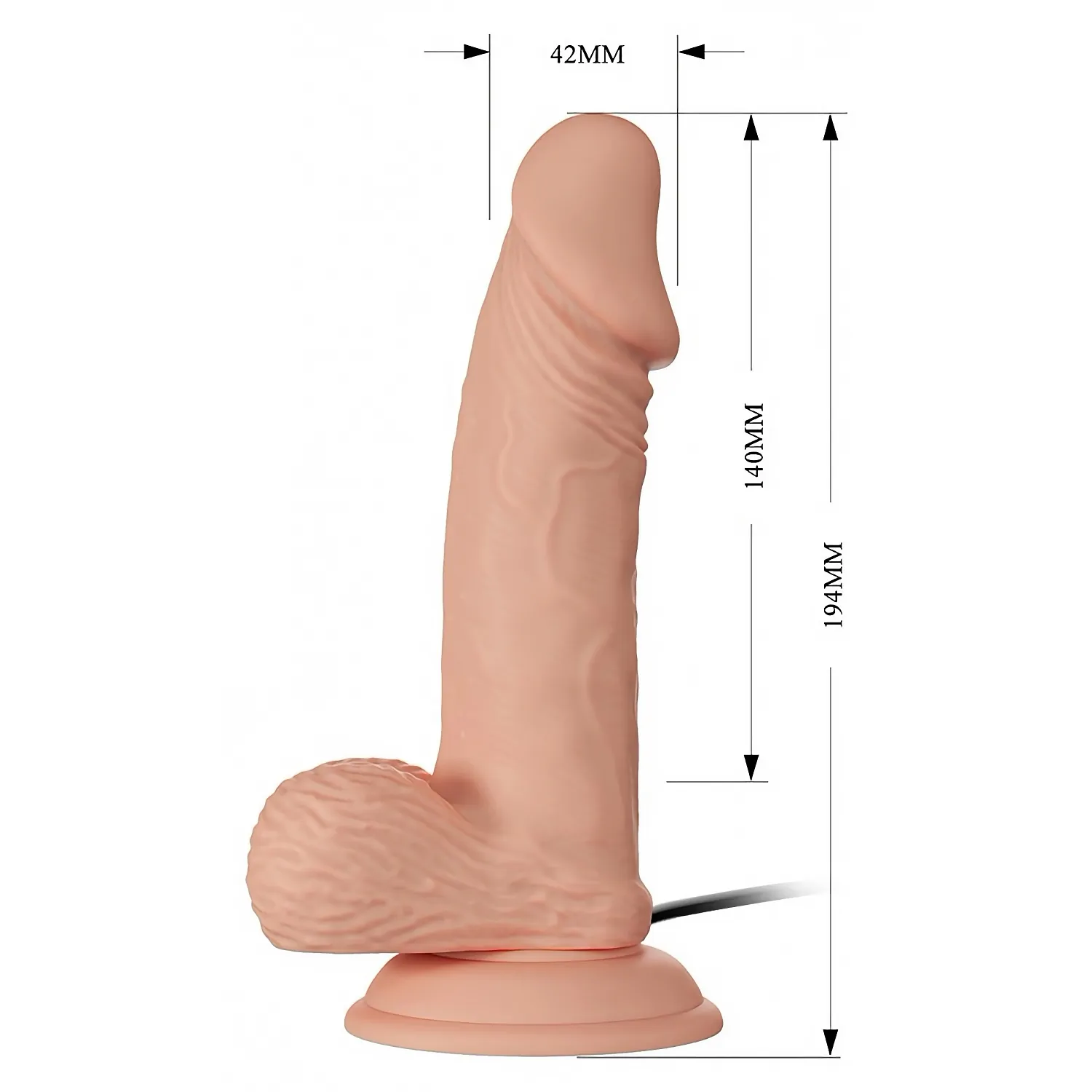 Vibrator realist Pretty Love Zebulon, 19,4 cm: exterior din TPR moale și miez ferm, ventuză puternică pentru utilizare hands-free și tele-comandă cu fir pentru reglaj fin al vibrațiilor. Waterproof, ștergere ușoară.