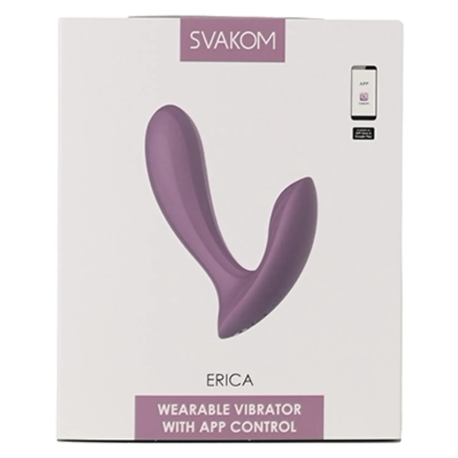 Erica de la Svakom este un vibrator purtabil, realizat pentru stimulare internă și externă prin cele două motoare silențioase care oferă impulsuri constante. Forma flexibilă se modelează comod pe corp, iar mărimile compacte îl fac ușor de purtat discret.