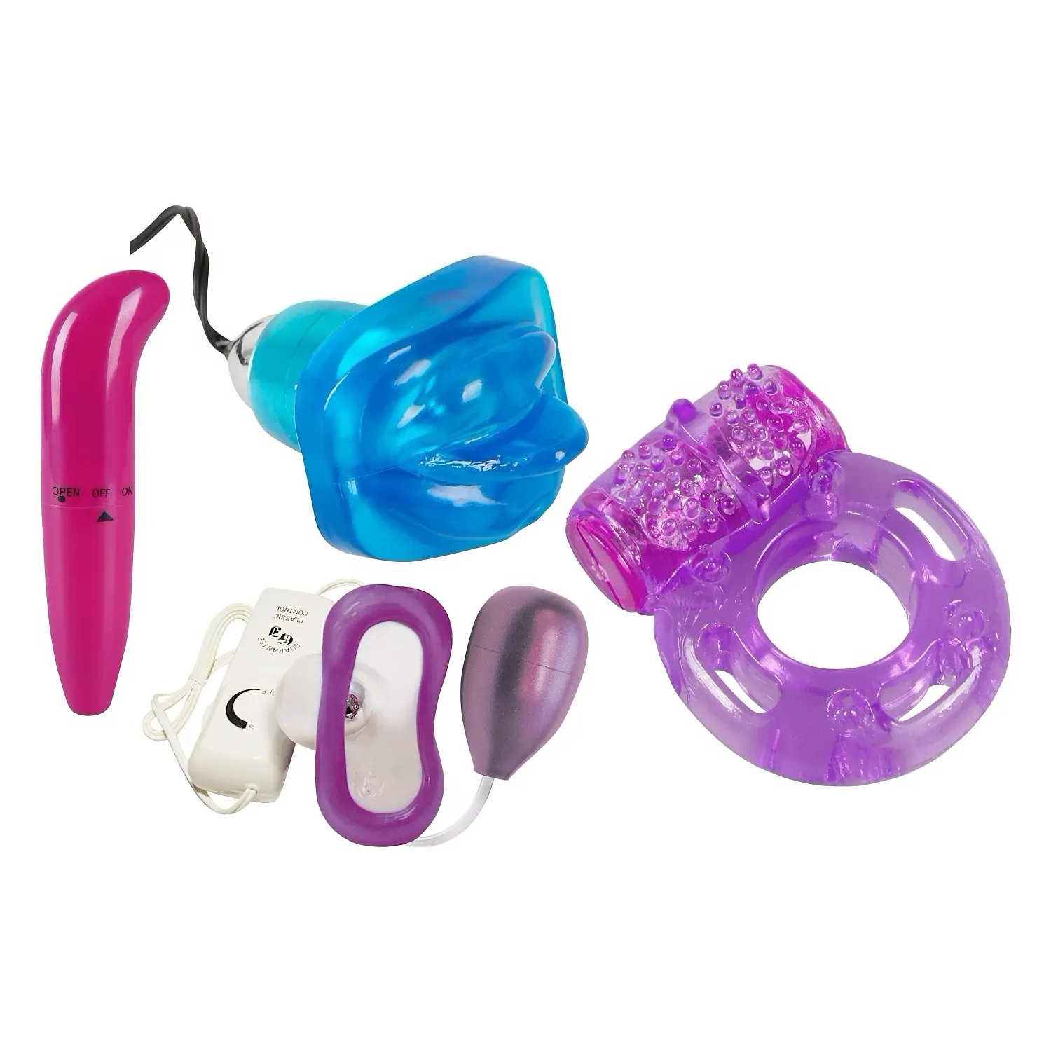 Set complet pentru intensificarea plăcerii: stimulare clitoridiană, internă și partenerială într-un singur pachet. Articolele se îmbină armonios — sucțiune, limbă vibratoare, punct G și inel vibrator pentru preludiu, sex și jocuri erotice care duc rapid la orgasm.
