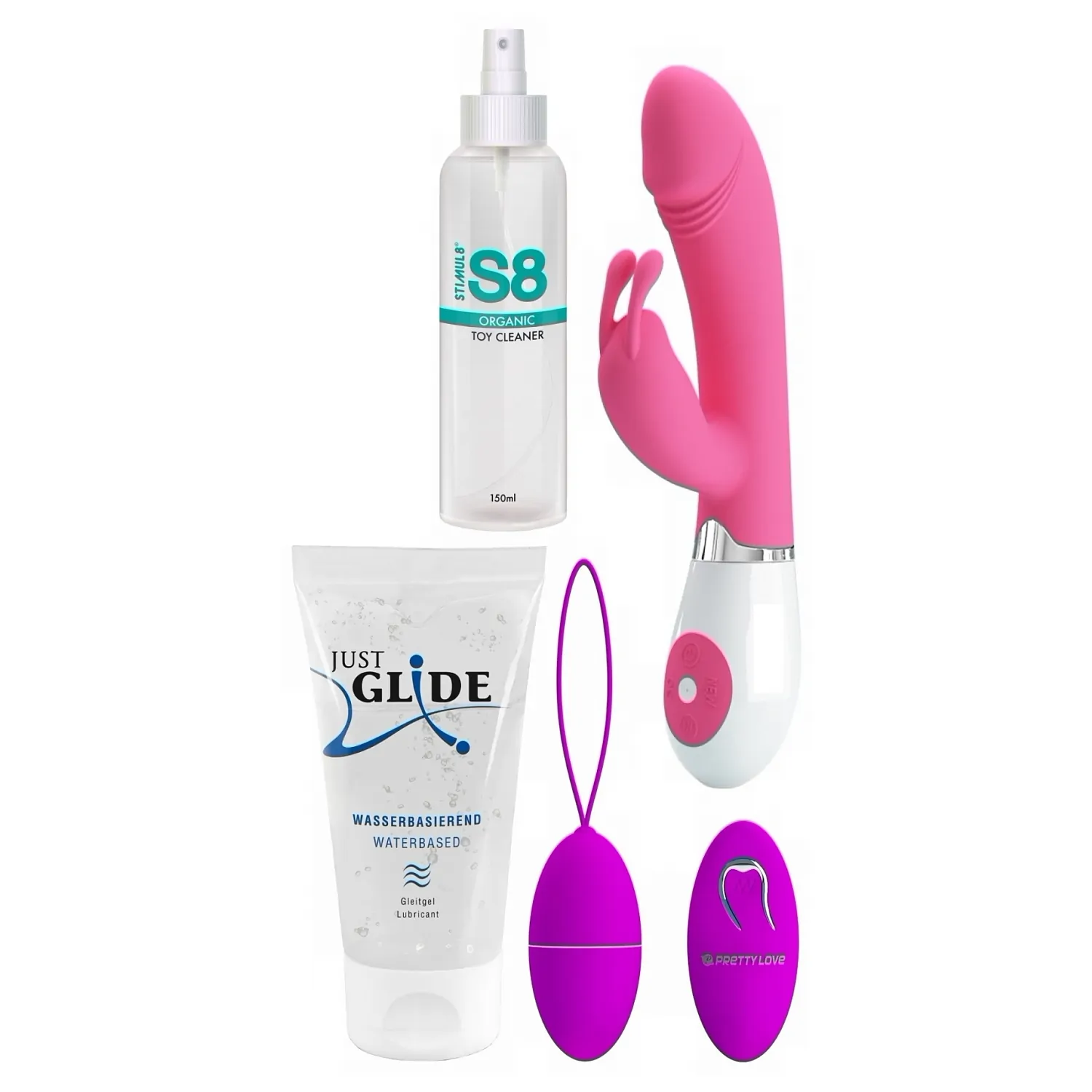Cum se folosesc împreună: epurați jucăriile cu Stimul8, aplicați o cantitate potrivită de Just Glide pe suprafețe și pe piele, porniți vibratorul pe un mod blând pentru încălzire, apoi creșteți puterea sau adăugați stimulatorul pentru clitoris. Telecomanda oului poate fi preluată de aliat pentru jocuri surpriză, alternând modurile între pauzele de masaj senzual.