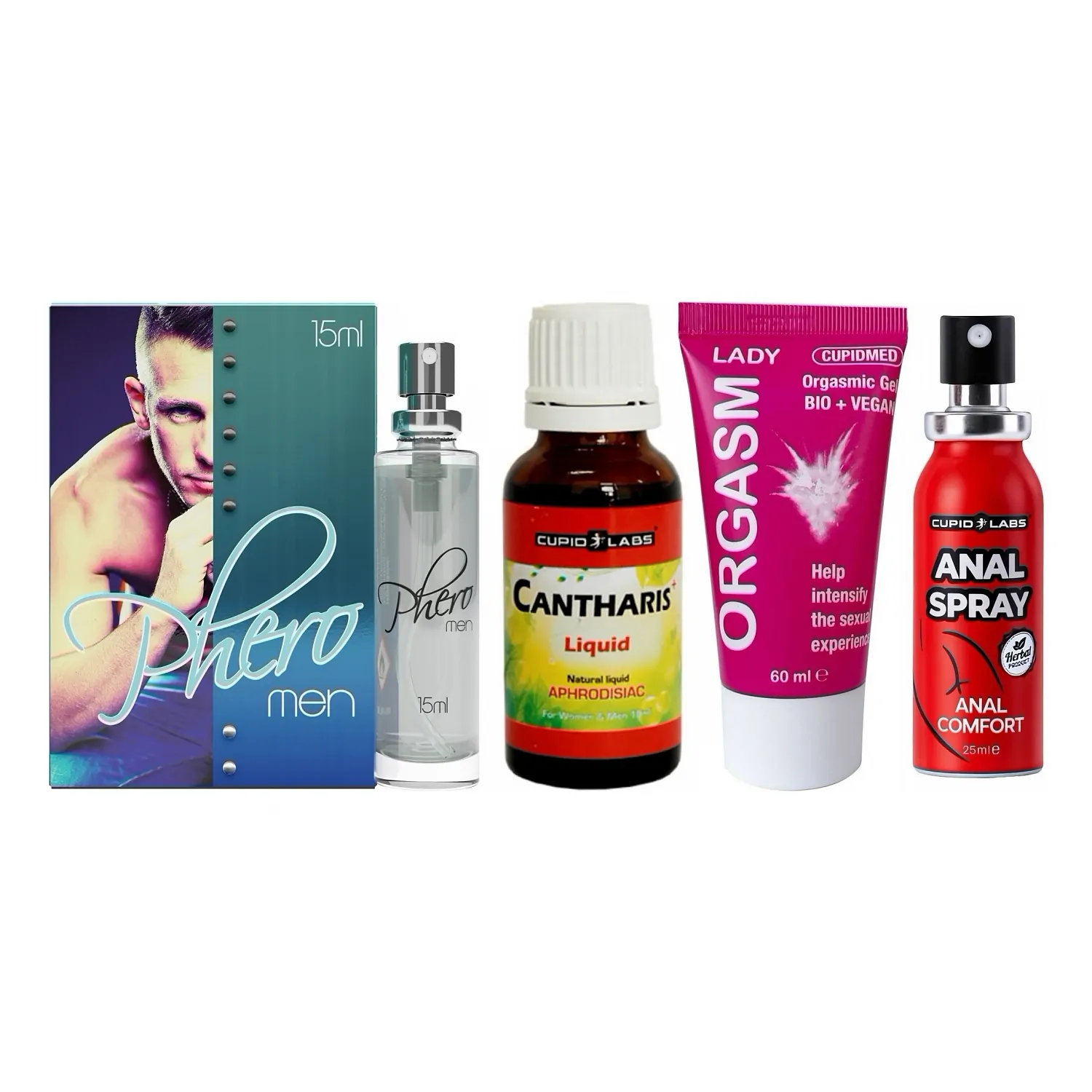 Set compact pentru nopți intense: liniștește disconfortul, amplifică trăirile și aprinde chimia dintre voi. Spray-ul pregătește luxul anal, gelul amplifică sensibilitatea, picăturile trezesc apetitul, iar parfumul cu hormoni de atracție adaugă magnetism în preludiu.