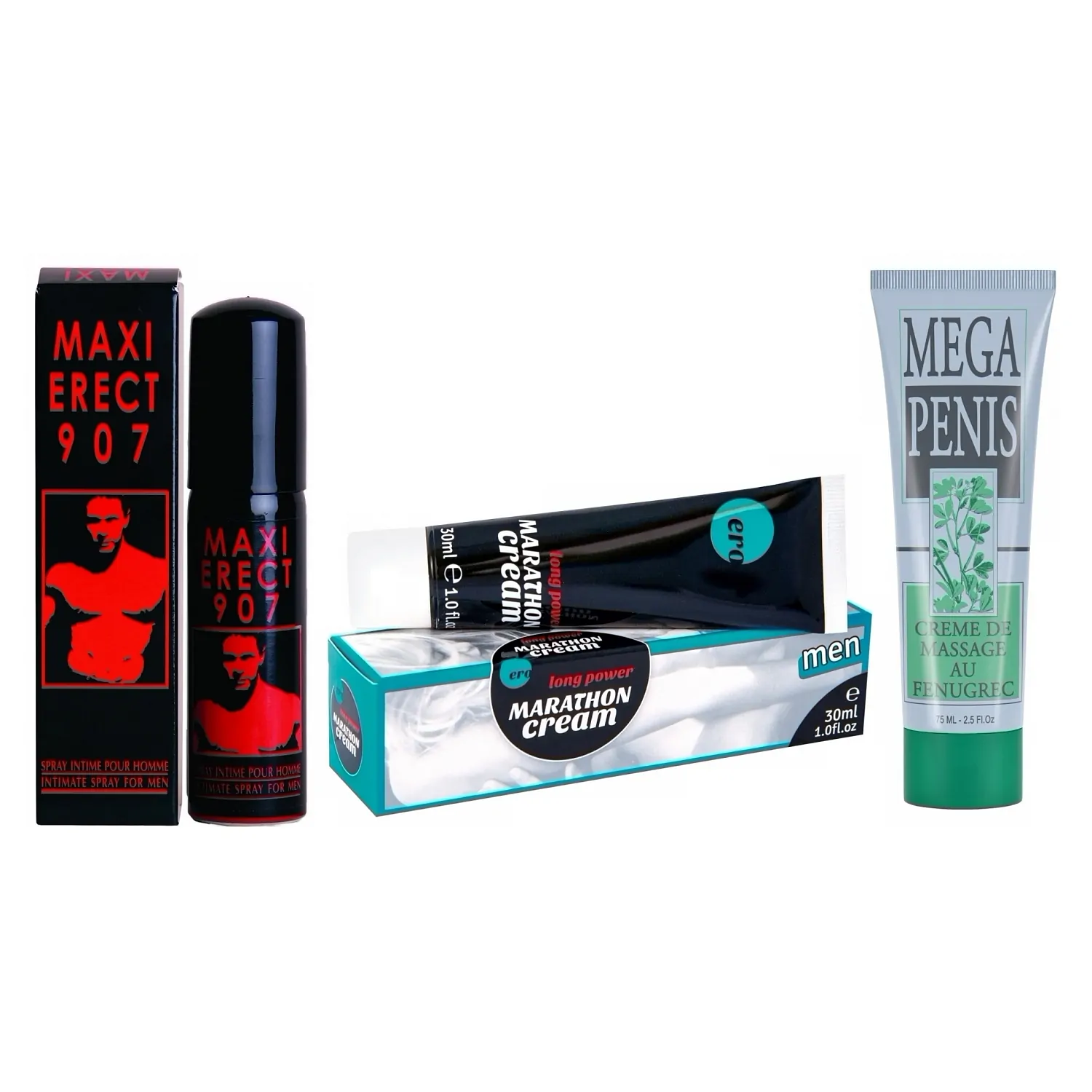 Set perfect pentru nopți pline de încredere: sprayul activează fermitatea rapid, crema Marathon prelungește controlul, iar Mega Cream lucrează pentru volum și aspect. Se folosesc combinat — aplicare punctuală cândva de act și utilizare regulată pentru efecte vizibile.