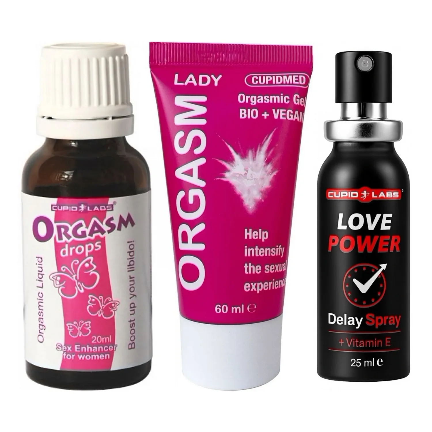 Set perfect pentru cupluri care vor mai mult: preludiu intens, control al duratei și o intensificare a dorinței. Sprayul prelungește actul, gelul amplifică senzațiile feminine, iar picăturile trezesc apetitul — folosite împreună dă momente memorabile.
