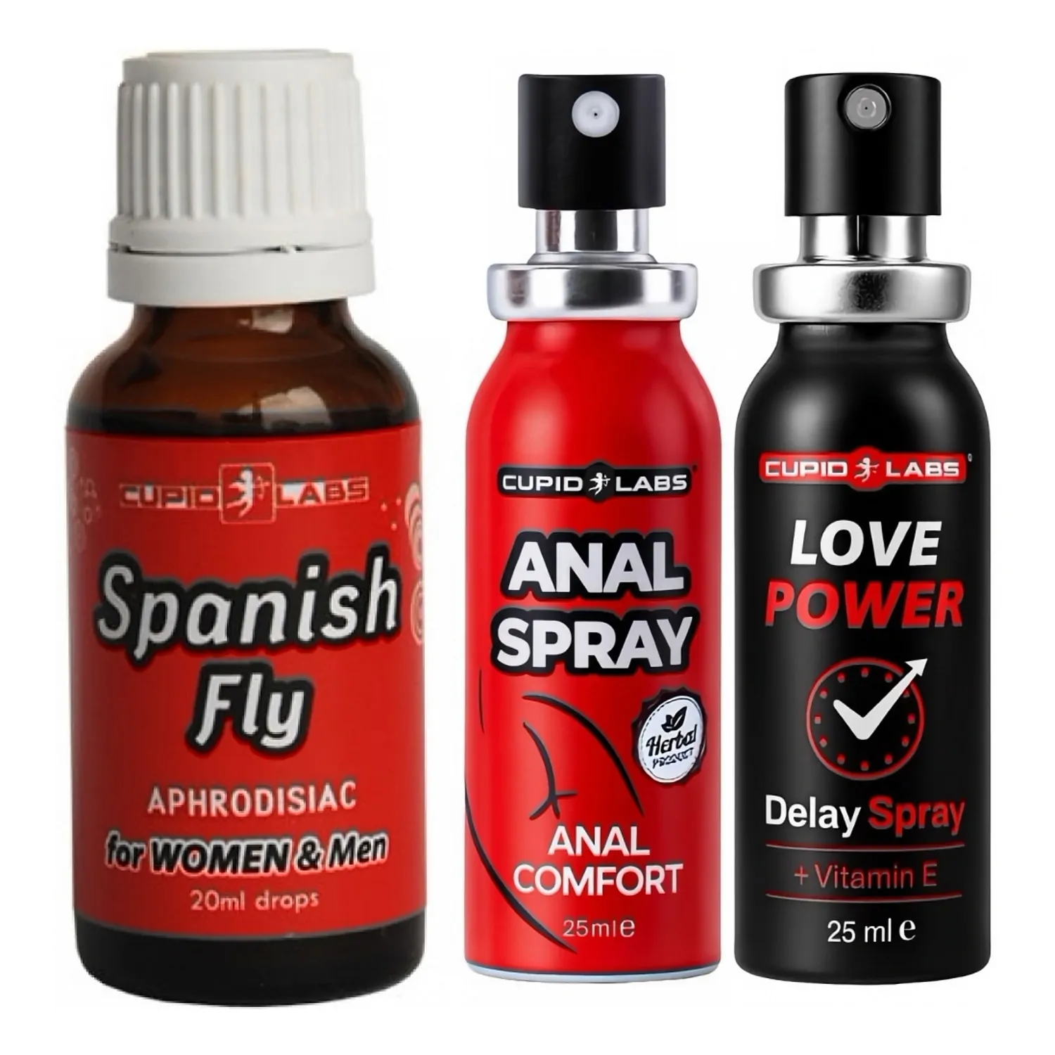 Un set gândit pentru nopți memorabile: preludiu aprins, control al climaxului și confort la penetrare. Spray-urile reduc sensibilitatea şi relaxează zona anală, iar picăturile trezesc dorinţa — utilizate împreună furnizează momente mai lungi, mai simpatice şi mai conectate.