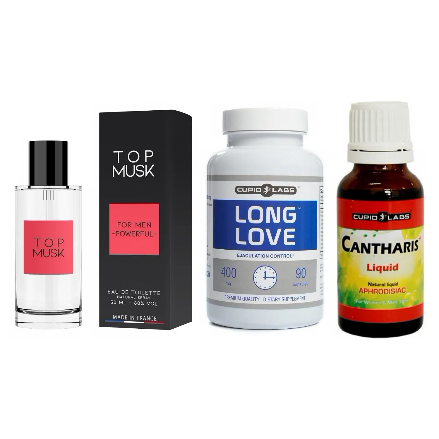 Recâștigați siguranța în dormitor cu un set complet: supliment pentru întârziere, picături afrodisiace și esență cu feromoni. Funcționează sinergic pentru a întârzia climaxul, a aprinde dorința și a dezvoltă atracția — ideale pentru nopți mai lungi și intime.