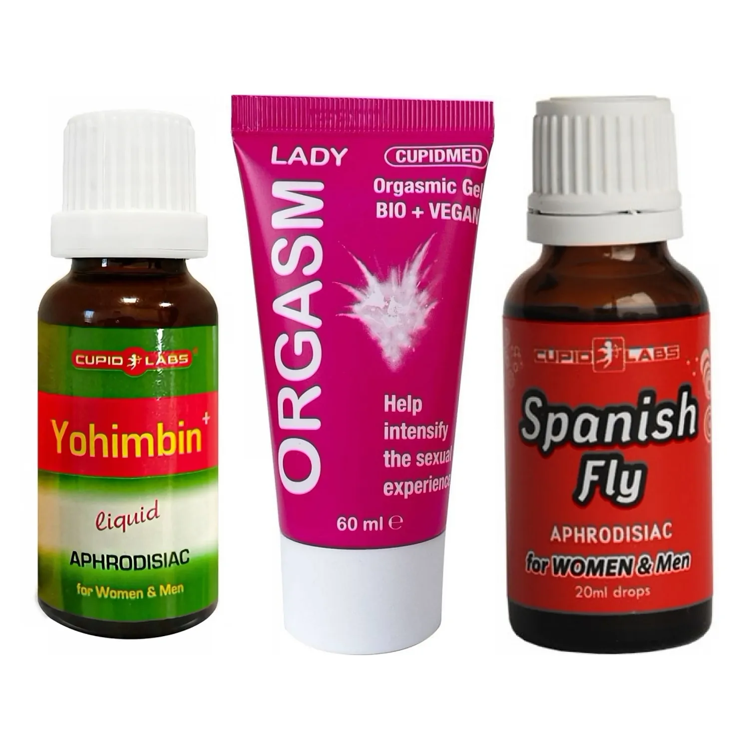 Set perfect pentru reaprinderea poftei și amplificarea senzațiilor. Gelul crește receptivitatea locală, picăturile trezesc apetitul erotic, iar Yohimbina susține potență și performanță; se folosesc împreună pentru preludiu, frecție și stimulare, creând clipe intime mai profunde.