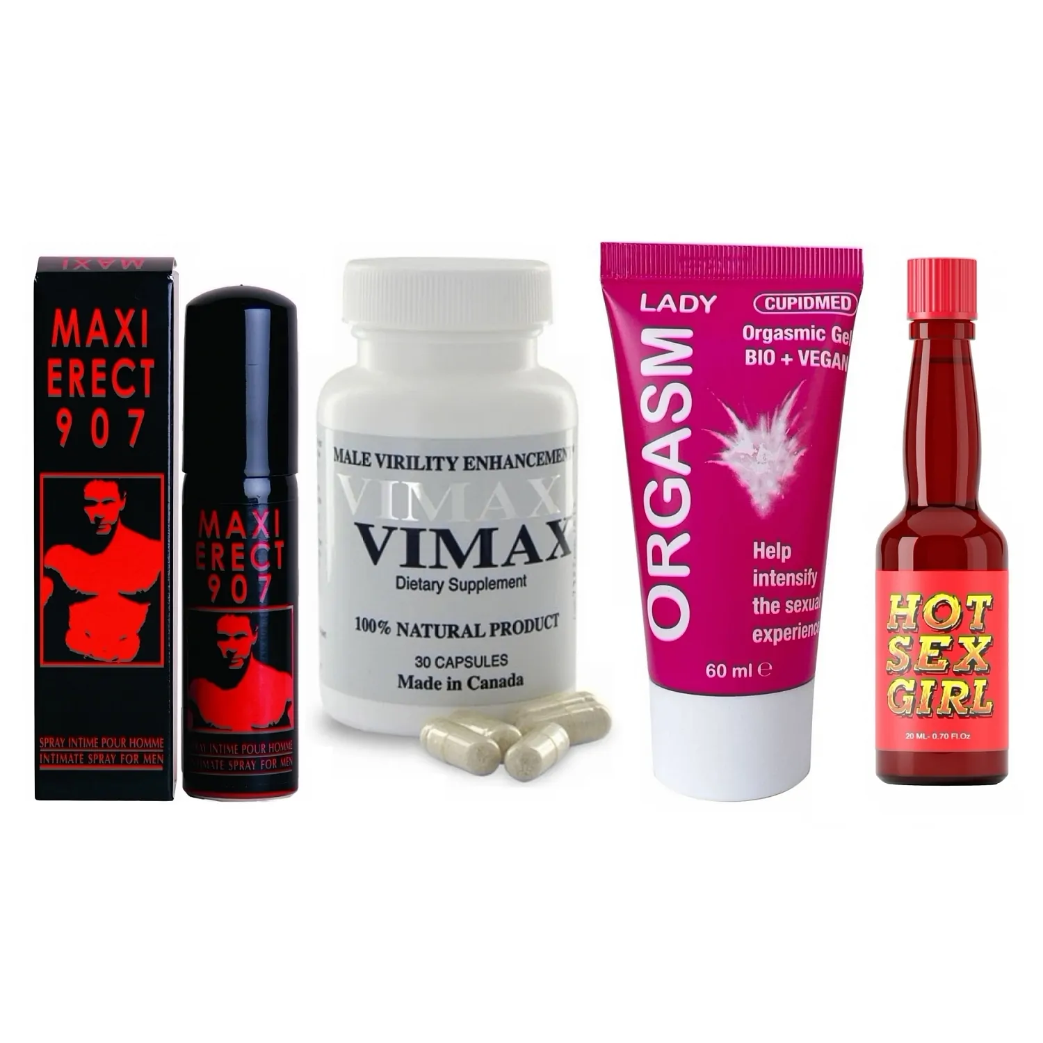 - Gel Climax Lady (60 ml): textură fină, hipoalergenic și fără miros, aparte realizat pentru a mări receptivitatea zonelor intime. Produce trăiri plăcute de încălzire și furnicături care intensifică preludiul și experiența sexuală, poate fi folosit și în timpul actului pentru creșterea intensității.
