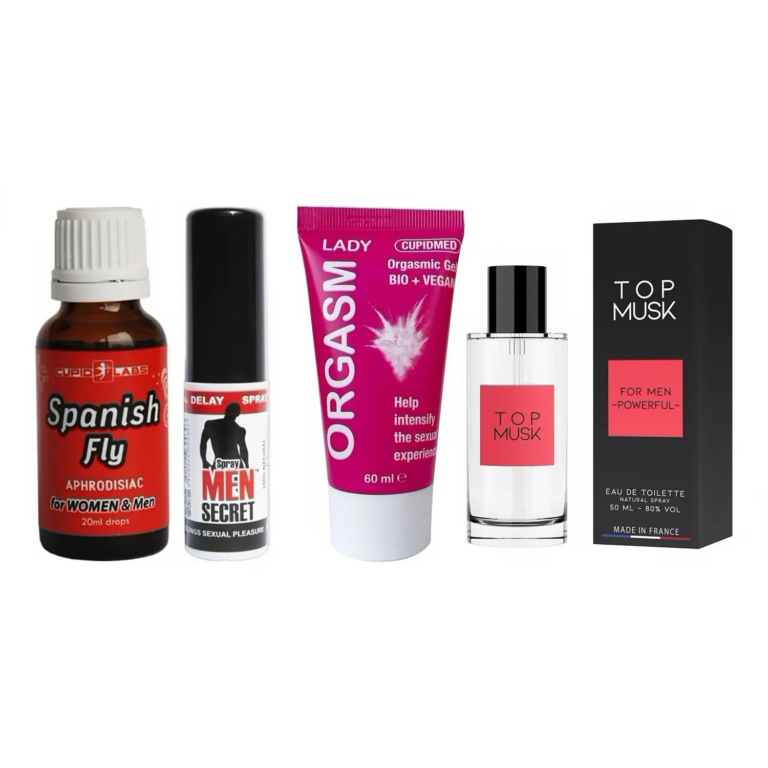 Recâștigă controlul și reaprinde dorința cu un set complet pentru nopți memorabile. Mirosul atrage, picăturile trezesc apetitul, gelul intensifică impresiile iar spray-ul predă controlul necesar pentru satisfacție comună.