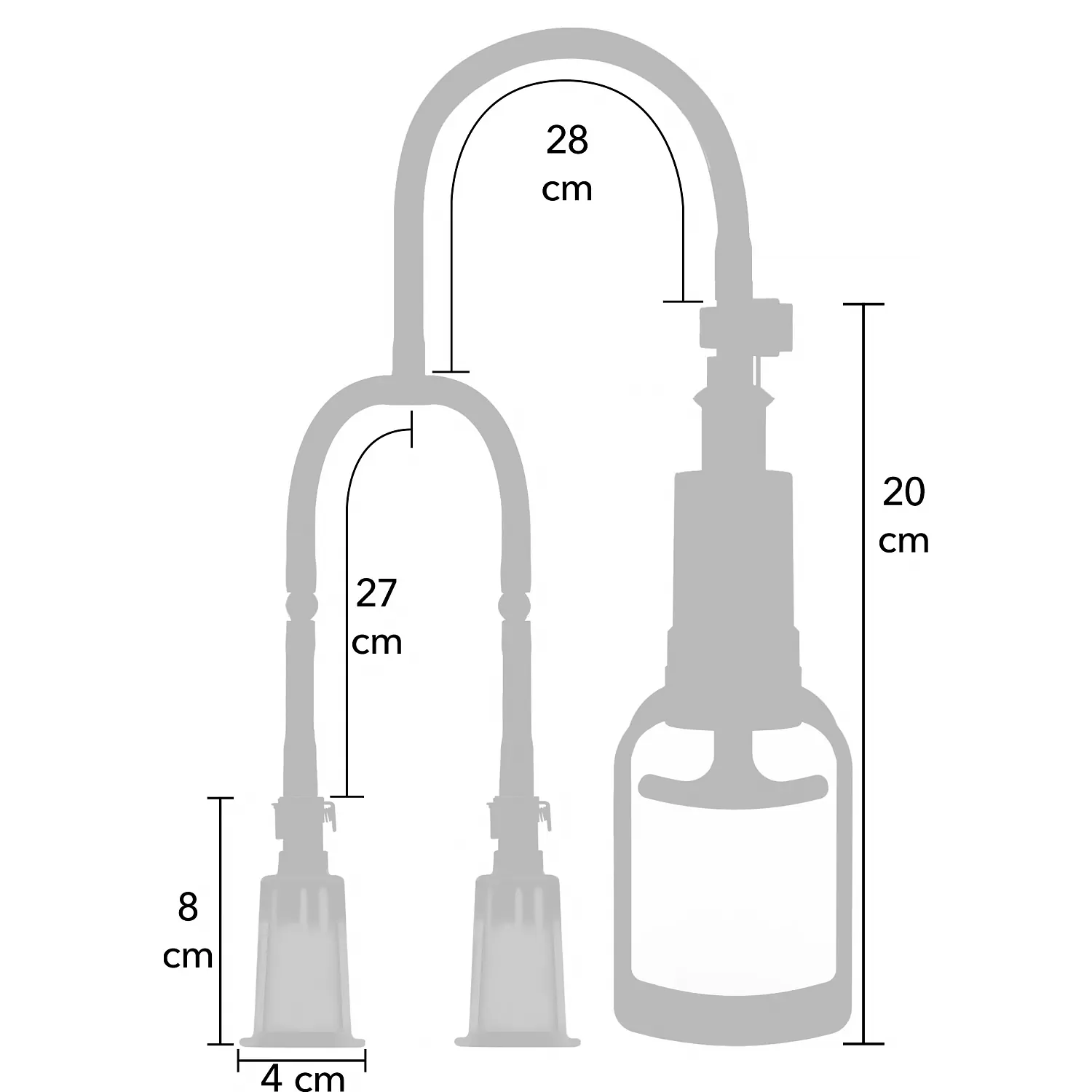 Aplicare: Plasați cupa peste sfârc și pompați manual până la nivelul de vacuum dorit. Ventilul de pe cilindru păstrează presiunea chiar și după îndepărtarea furtunului și a pompei, iar supapa de eliberare grabnică îngăduie oprirea imediată.