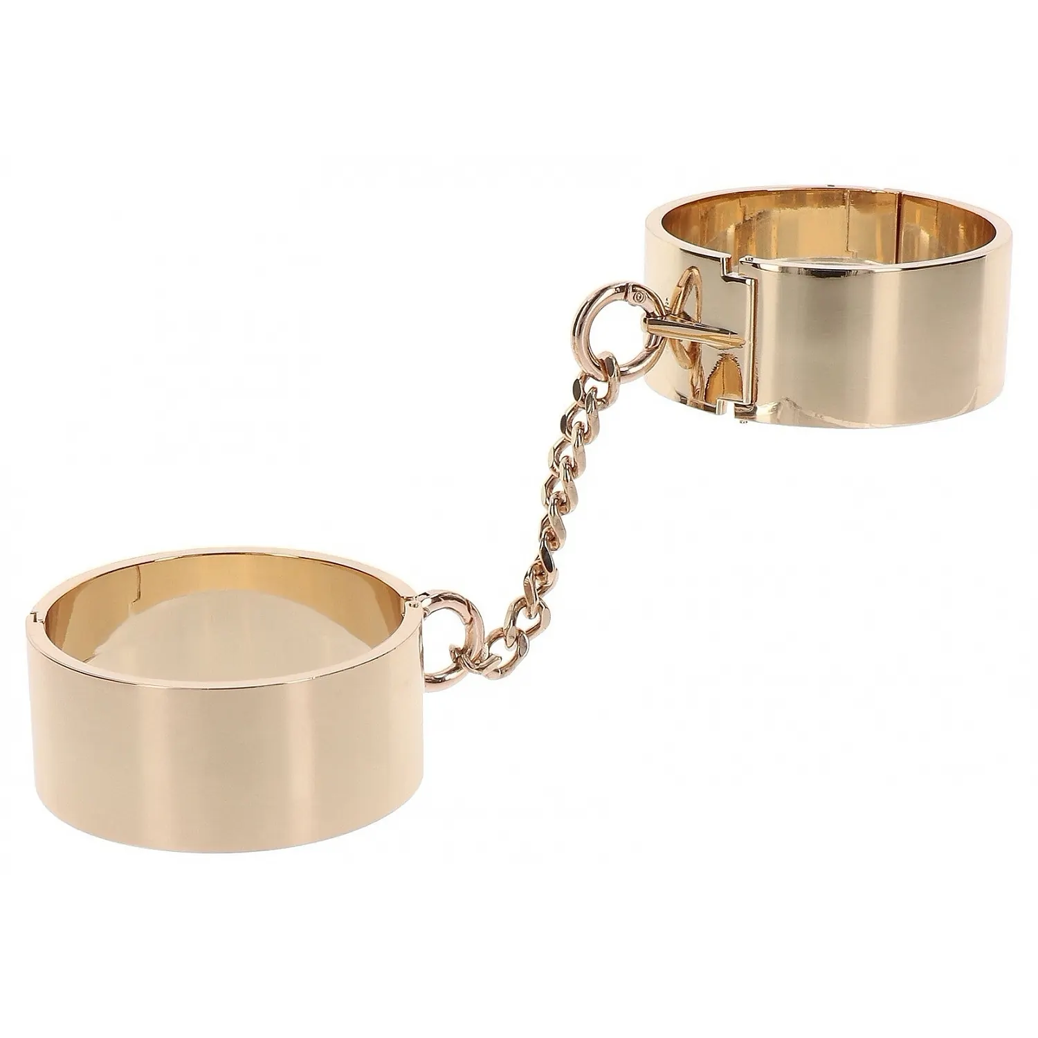Cătușe Dona din metal excluzând nichel, finisaj aur roz. Robuste, sigure pentru corp și ușor de utilizat, cu diametru partea interioară 6.2 cm — accesoriu cu bun gust pentru jocuri BDSM sau ca bijuterie îndrăzneață.