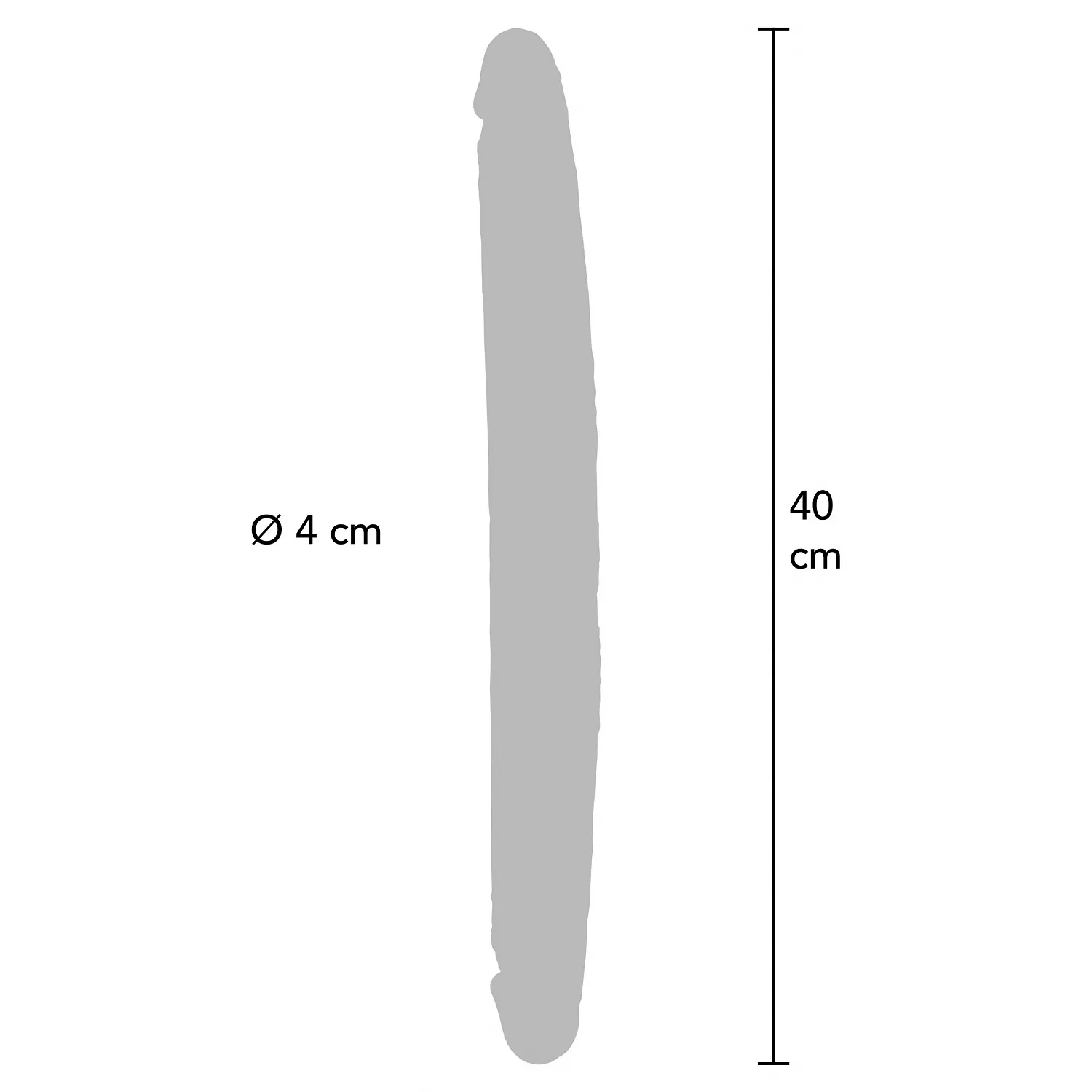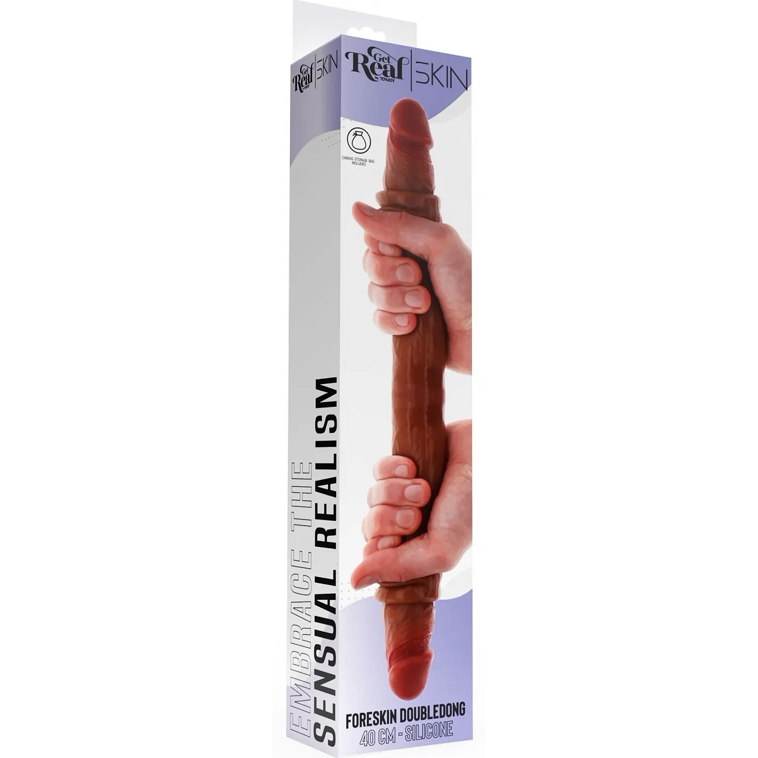 Dublu dong Get Real, 40 cm, din silicon lichid, cu cilindru mobil și tehnologie dual density pentru glidare naturală. Material sigur pentru corp și husă textilă pentru depozitare discretă. Perfect pentru utilizare solo sau în cuplu.