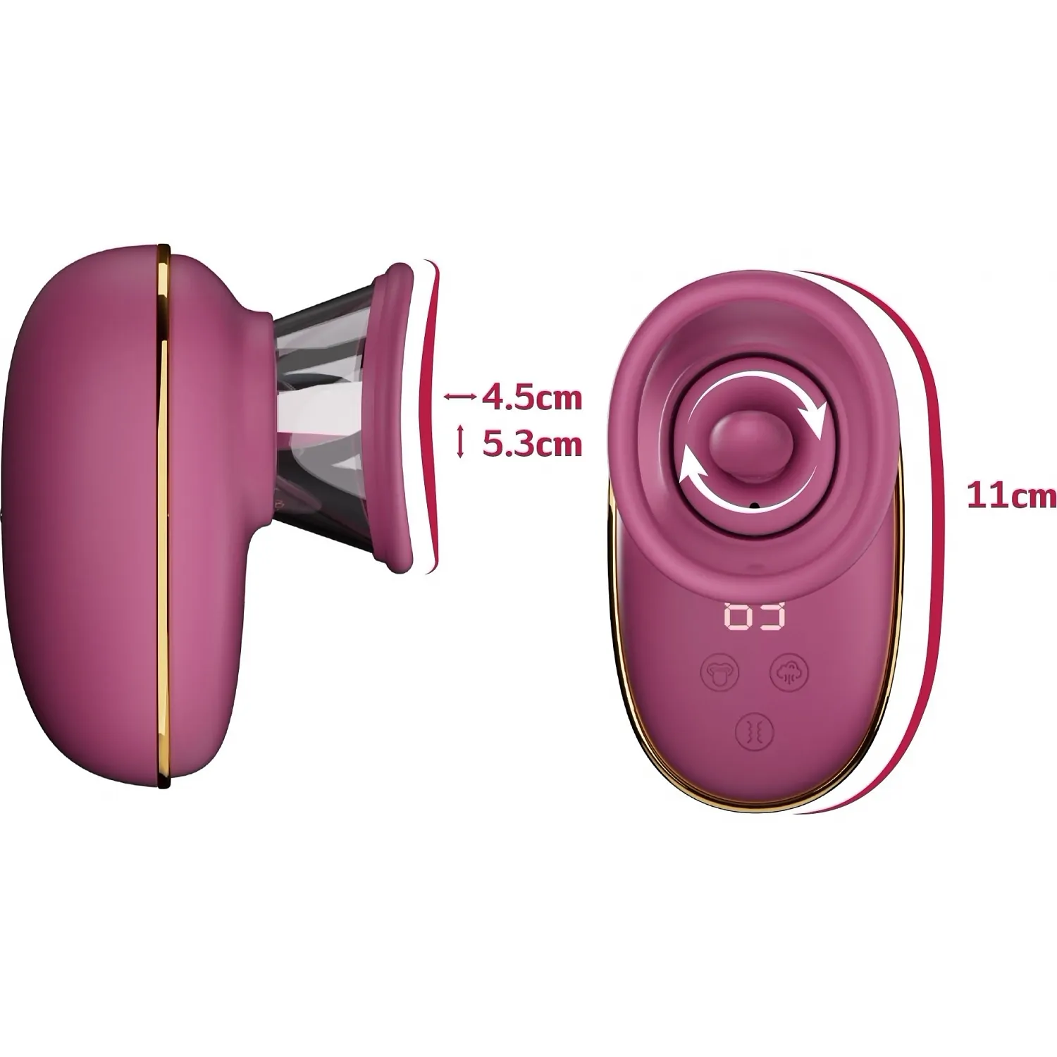 Alege dintre 9 moduri de întoarcere și vibrație și 3 nivele de vacuum pentru ajustare fină. Cupa de vacuum crește circulația locală, iar limba rotativă poate fi uzată și independent, cu un acces mai profund pentru stimulare concentrată.