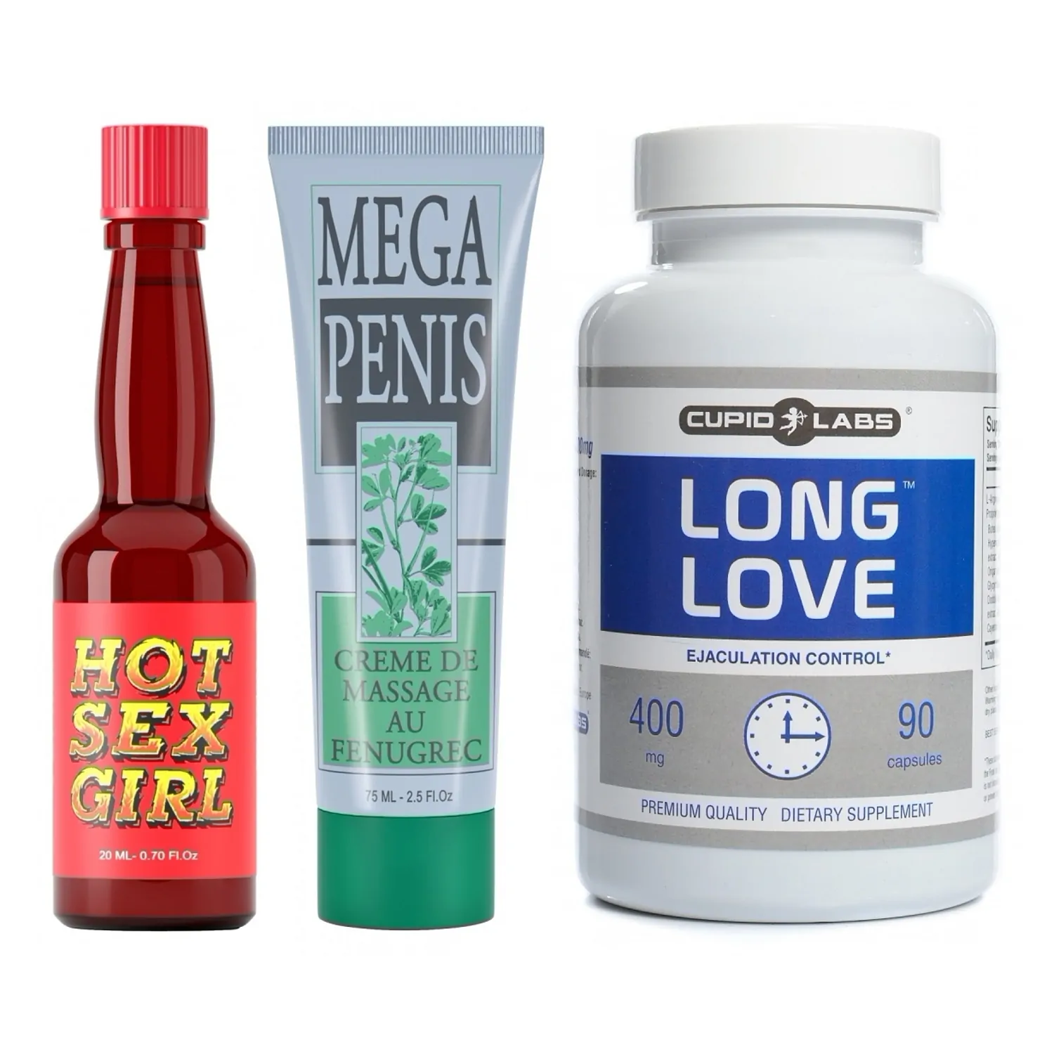 Un kit complet pentru echilibru în intimitate: pilule pentru întârziere, cremă pentru mărire și picături afrodisiace. Îmbunătățește rezistența, amplifică senzațiile și intensifică ungerea — produse care se întregește pentru experiențe mai satisfăcătoare.