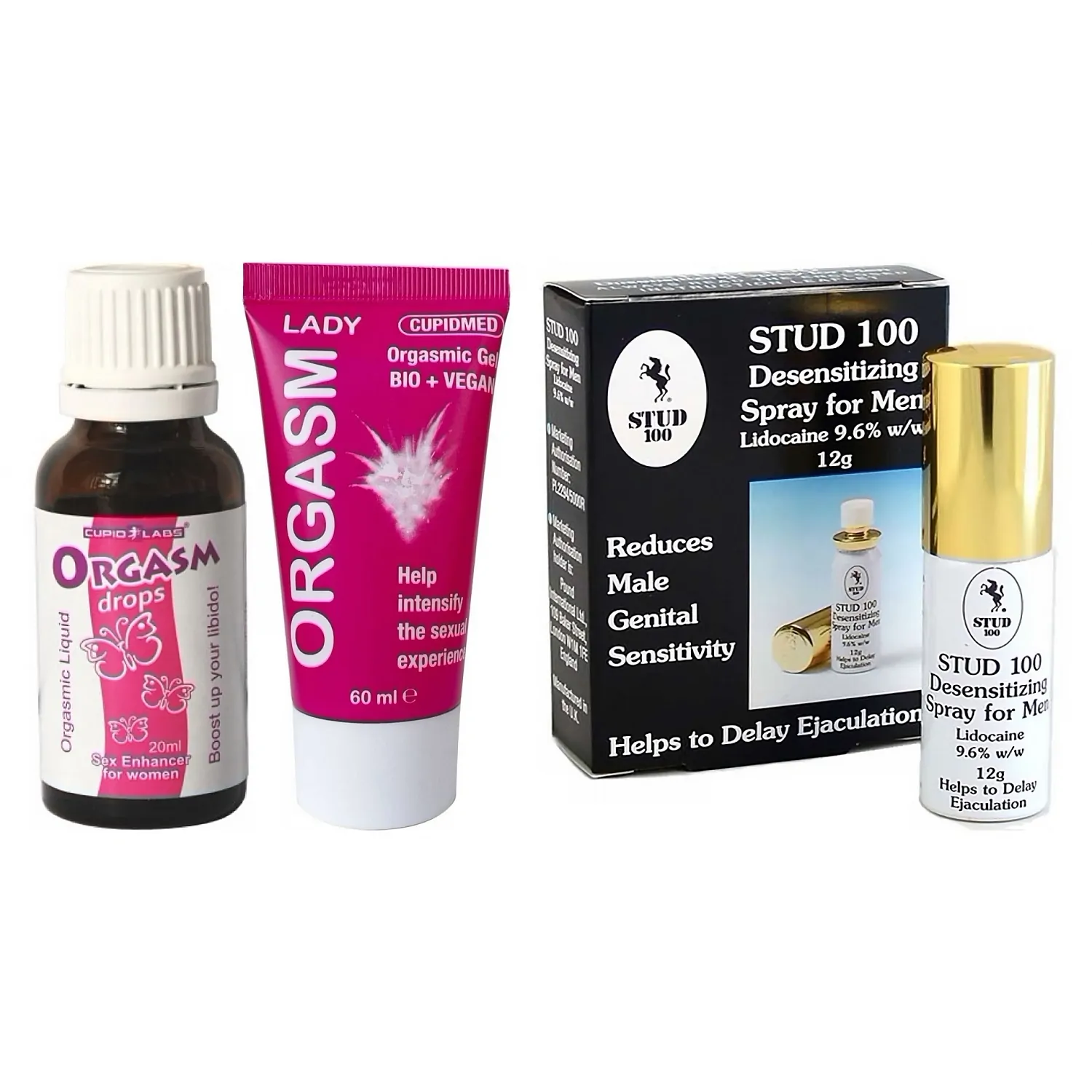 - Stud 100 Atomizator (12 g): reduce temporar sensibilitatea prin anestezie locală controlată, mărește durata actului, concluzie în circa 5 minute, flacon suficient pentru multe pulverizări; non-toxic și folosit de bărbați care doresc mai mult control.