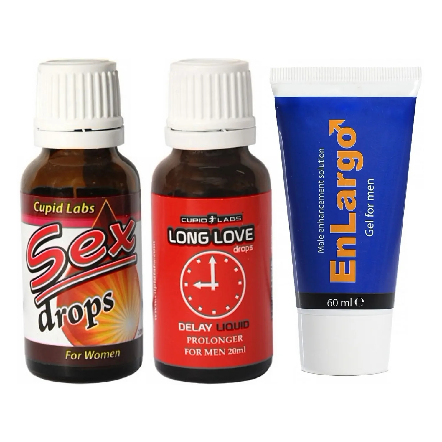 Ce asigură fiecare produs: crema Enlargo sprijină o circulație locală mai bună și o senzație de fermitate, Long Love furnizează control și încredere pentru actul senzual prelungit, iar Sex Drops Women stimulează dorința, energia și receptivitatea. Folosite în sinergie, facilitează un preludiu mai bogat, clipe de stimulare prelungită și culminări mai satisfăcătoare.