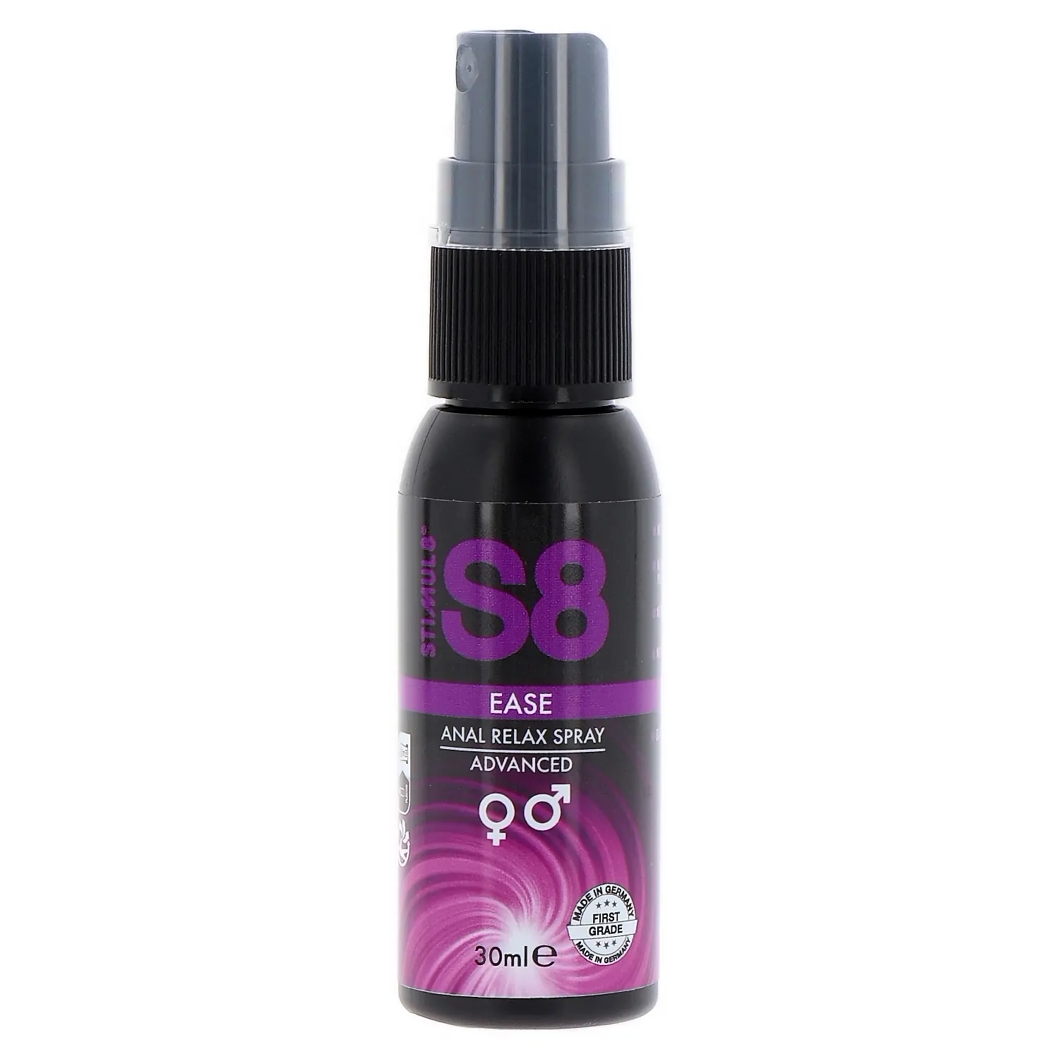 Atomizator relaxant anal Stimul8 S8 Ease 30 ml cu Laureth-9 pentru desensibilizare simplă a zonei. 1–2 pulverizări, așteaptă câteva momente. Poate fi întrebuințat cu lubrifiant. Sigur pentru corp.