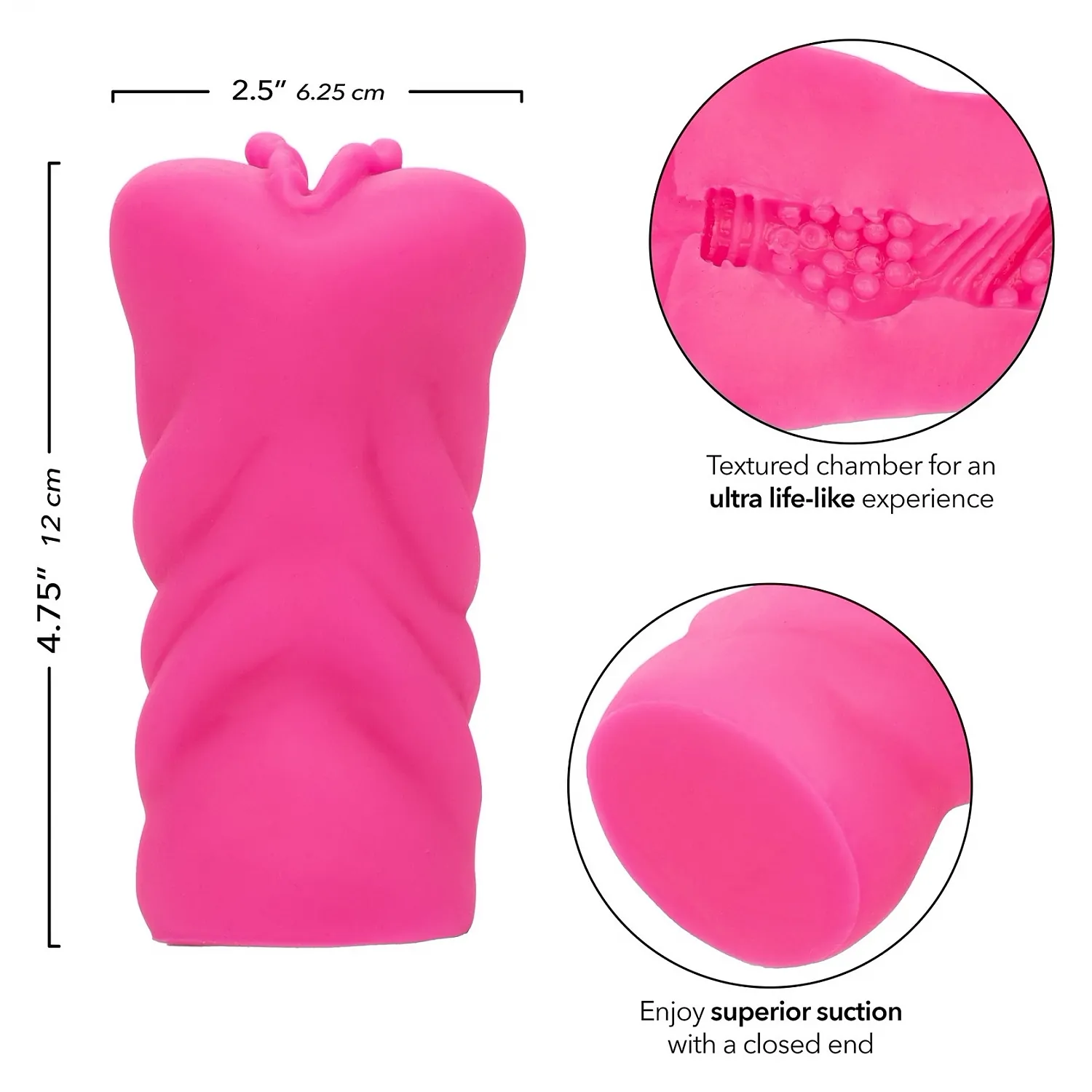 ✔Lungime: 12 cm ✔Diametru: 6.25 cm ✔Culoare: Roz ✔Material: TPE ✔Vibrații: Nu ✔Import: SUA ✔Brand:CalExotics