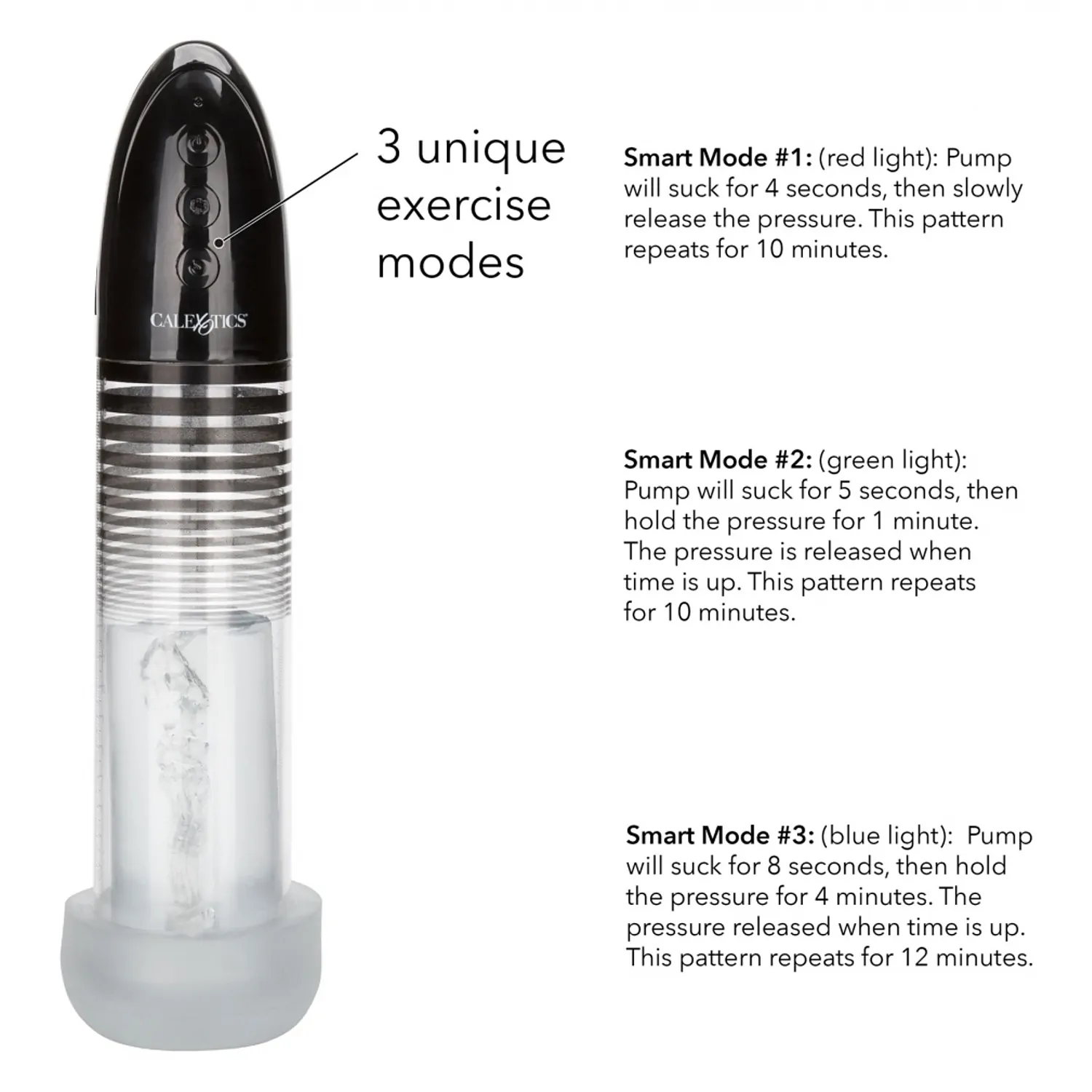Pompa automată CalExotics Optimum este un aparat reîncărcabil, proiectat pentru putere, precizie și utilizare facilă. Controlul ușor și butonul de eliberare grabnică permit sesiuni sigure, iar cilindrul rezistent are marcaje pentru a urmări progresul.