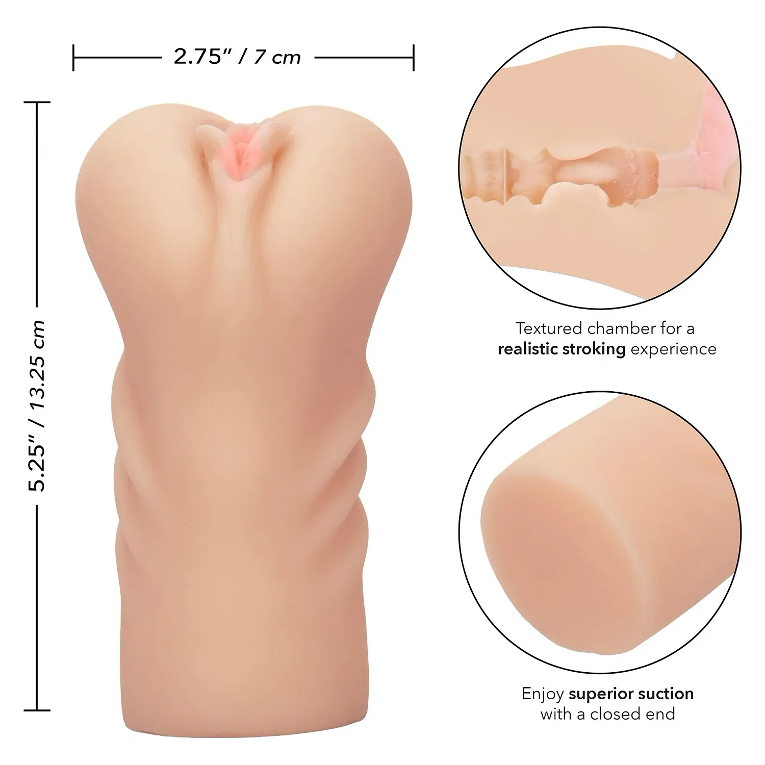 ✔Lungime: 13.25 cm ✔Diametru: 7 cm ✔Culoare: Natural ✔Material: TPE (Pure Skin) ✔Vibrații: Nu ✔Import: SUA ✔Brand:CalExotics
