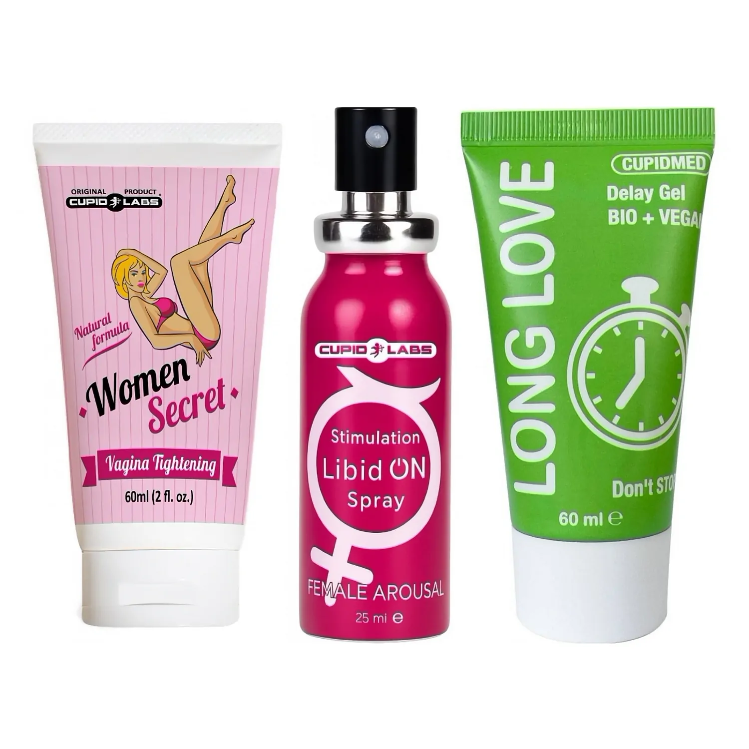 Siguranță și recomandări: cândva de prima întrebuințare testați pe o regiune mică de piele; respectați indicațiile fiecărui produs; dacă uzați crema, utilizarea unui prezervativ poate fi recomandată pentru confort și rezultate constante. Acest kit este conceput pentru persoane adulte, în relații consimțite, care vor să readucă plăcerea în prim-plan.