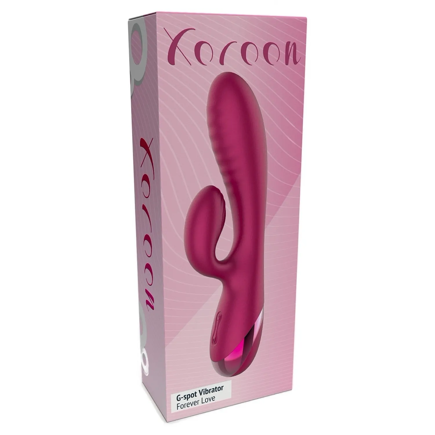 Forever Love de la Xocoon este un vibrator bunny creat pentru stârnire dublă, cu design ergonomic şi finisaj din silicon moale. Braţul clitoridian menţine contact constant fără disconfort, iar forma prudent lucrată urmăreşte contururile pentru o utilizare controlată.