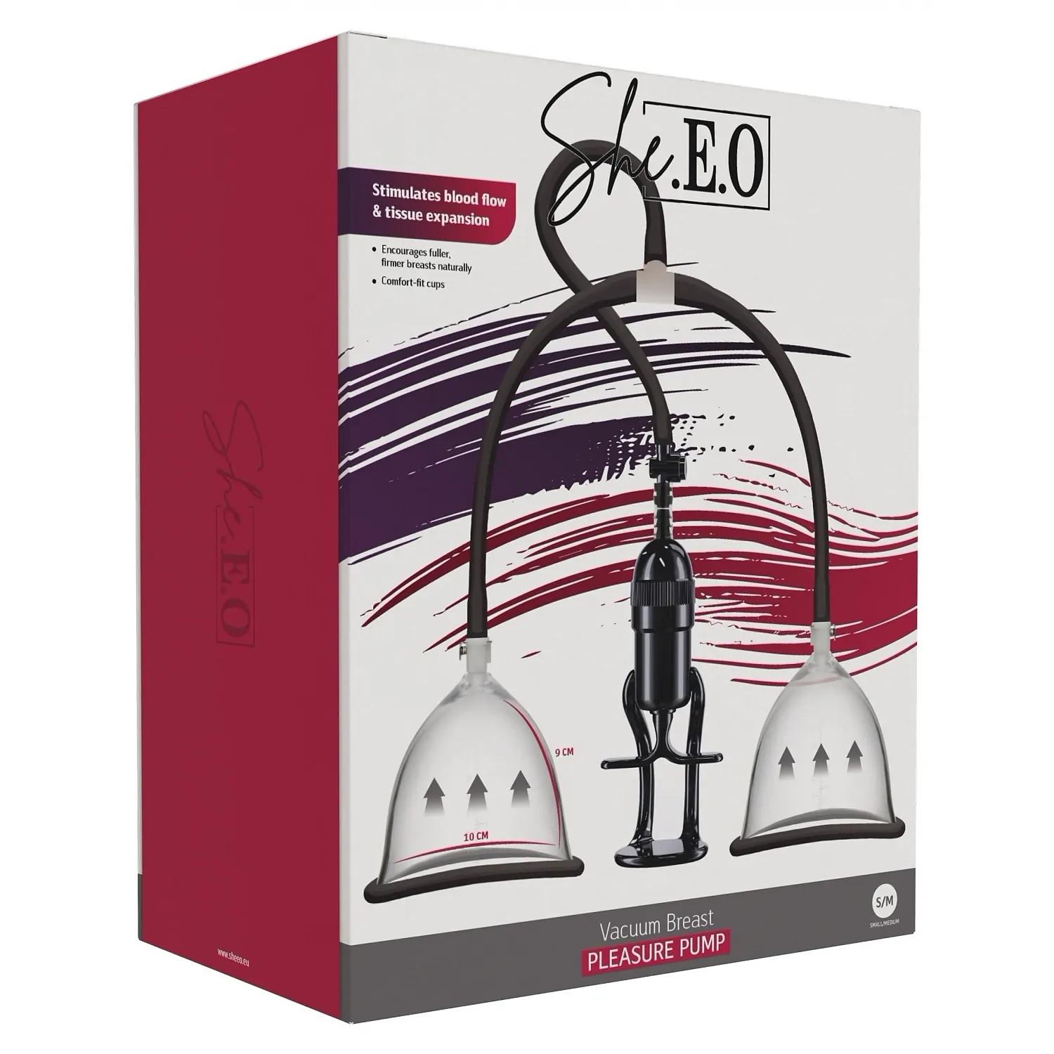 Pompa Vaccum SheEO, set S/M, constituie un vid reglementat pentru a intensifica receptivitatea zonei bustului. Ventil de menţinere a aspiraţiei şi supapă de eliberare grabnică pentru control imediat. Stil discret, uşor de utilizat.