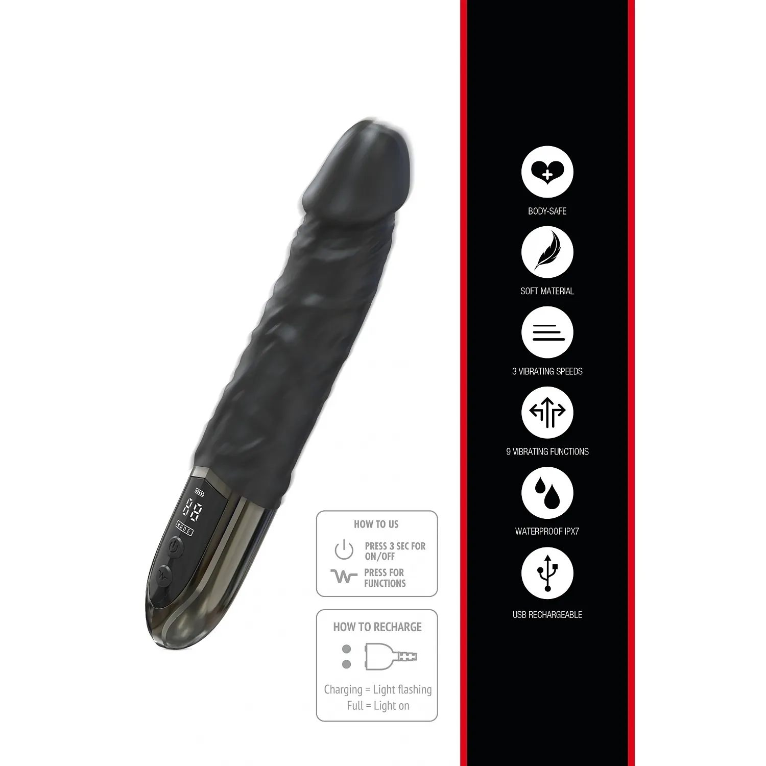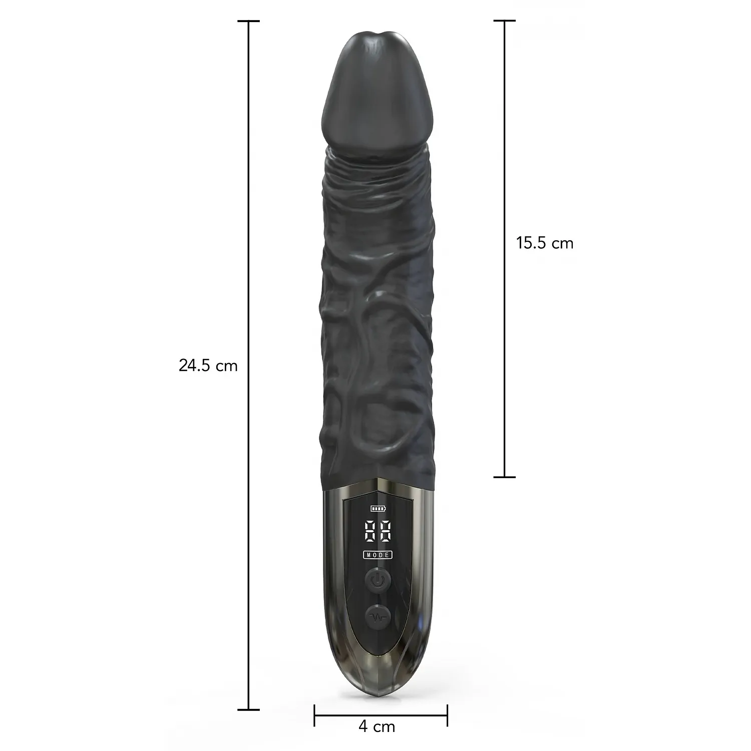 Beneficii și atribute: - Silicon moale, simpatic la atingere și hipoalergenic - Lungime totală 24.5 cm, 15.5 cm inserabili pentru control precis - Calibru 3.9 cm pentru stimulare constantă - Mai multe maniere de vibrație și trepte de viteză pentru adaptare la preferințe - Reîncărcabil cu acumulator Li‑Ion; încărcare prin USB, utilizare discretă - Ecran de control pentru monitorizarea vitezei - Robust la apă pentru curățare facilă și utilizare flexibilă