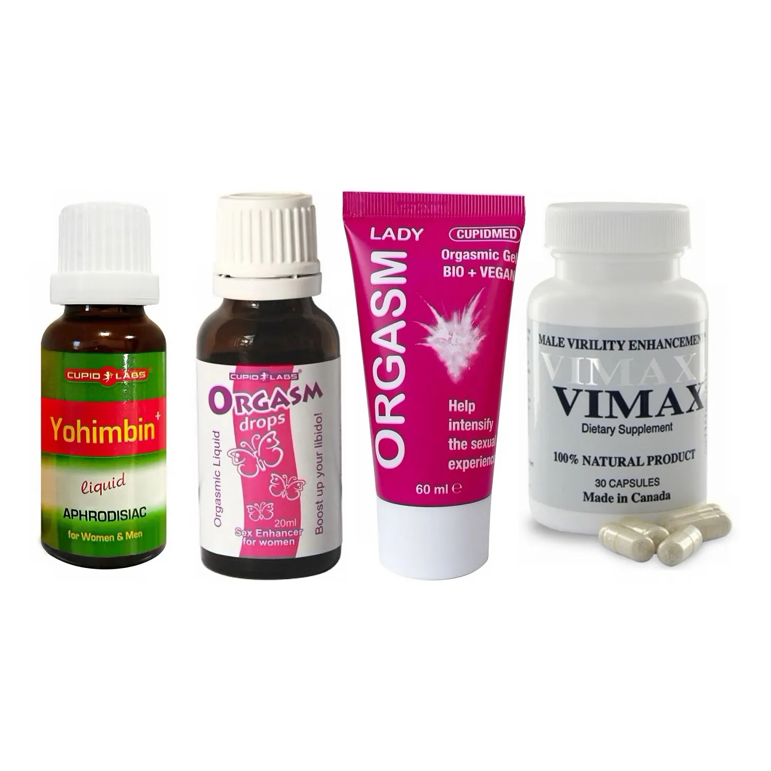 Cum se folosesc împreună: bărbatul urmează administrarea zilnică a capsulelor pentru a construi rezistența și tonicitatea în timp; cândva de apropiere, el dizolvă picăturile Yohimbin în apă pentru un plus de vitalitate. Femeia poate lua picăturile afrodisiace orale cu aproximativ 30 de minute înainte, iar gelul local se aplică neîntârziat premergător stimulării pentru senzații de căldură și furnicături. Astfel, preludiul devine mai intens, actul mai lung, iar climaxul mai puternic.