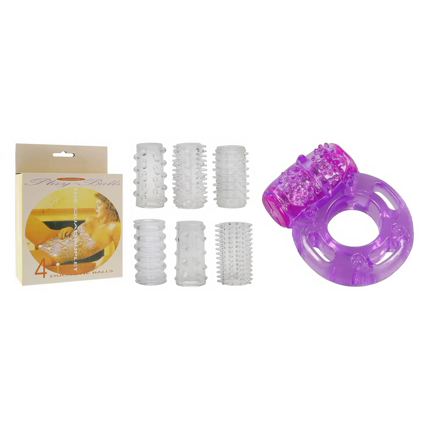 Un set perfect pentru trezirea dorinței: bile interne pentru emoții profunde, inel vibrant pentru erecție mai puternică și stimulare clitoridiană, plus şase manșoane texturate pentru varietate. Se folosesc împreună pentru preludiu, intensificare și act mai satisfăcător.