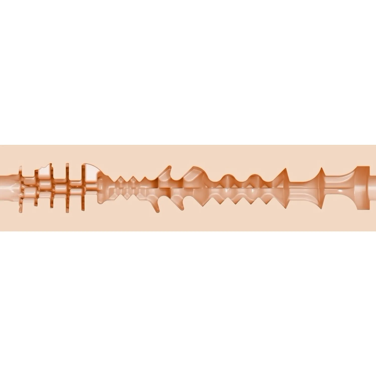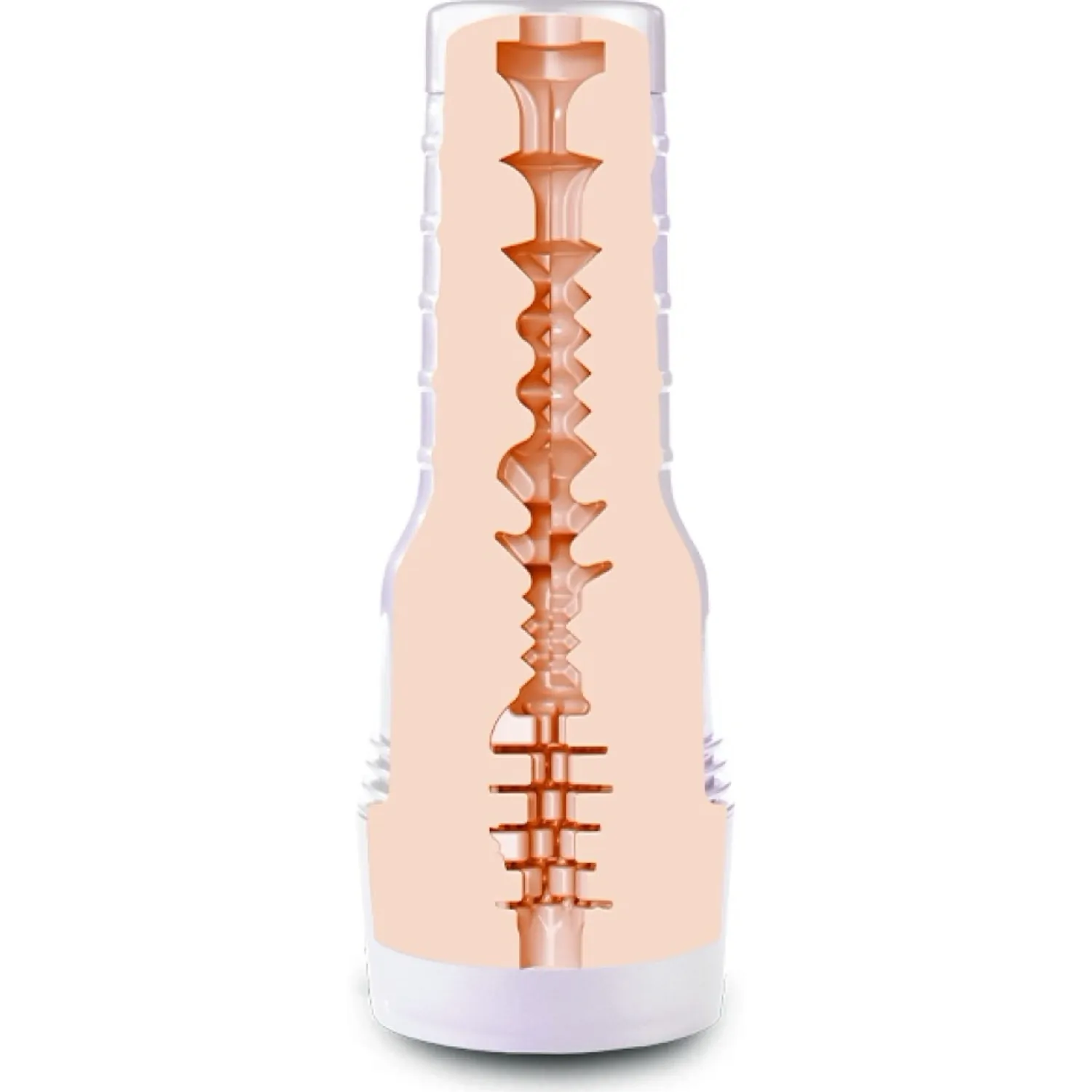 Interiorul îmbină straturi răsucite care conduc spre un centru notched, urmat de o cascadă de nervuri — formă gândită pentru intensitate progresivă și senzaţii diferite pe parcursul utilizării.