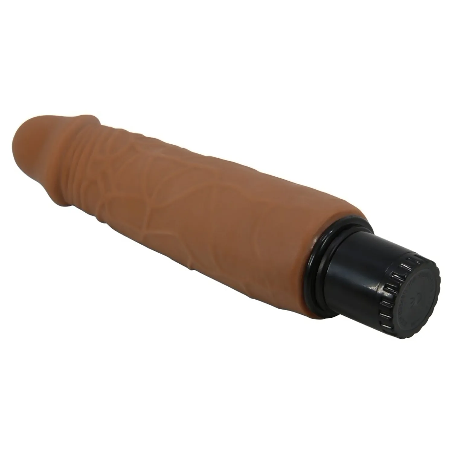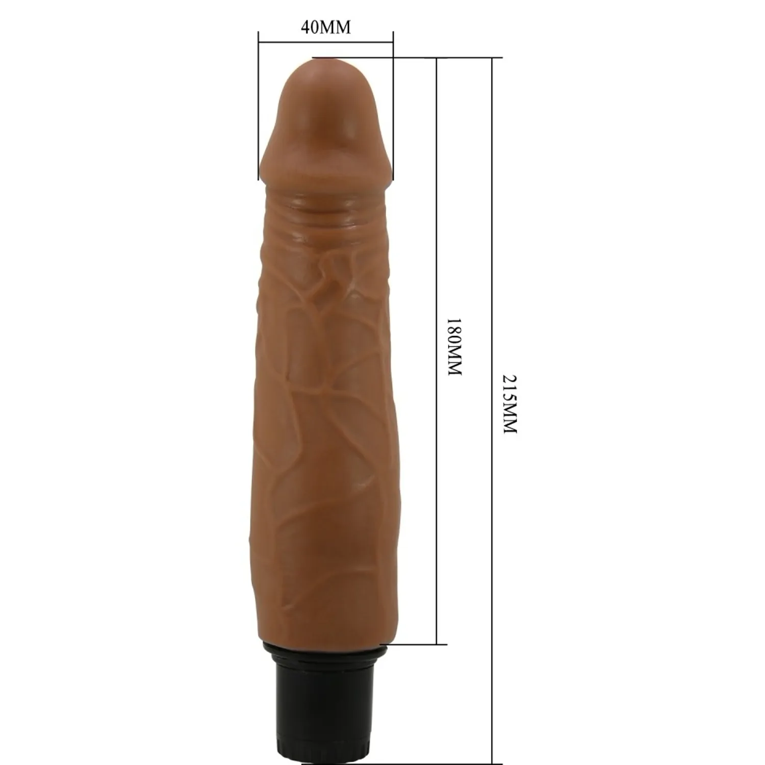 Beneficii și atribute: - Lungime totală: 21 cm - Material: TPR + ABS, ușor de curățat - Cap bulbos și shaft venos pentru stimulare internă realistă - Bază texturată pentru stabilitate; ventuză intensă pentru prindere sigură - Vibrații ajustabile pentru ajustare fină a intensității - Funcționează cu 2 baterii AAA; aferent cu hamuri ce acceptă ventuză