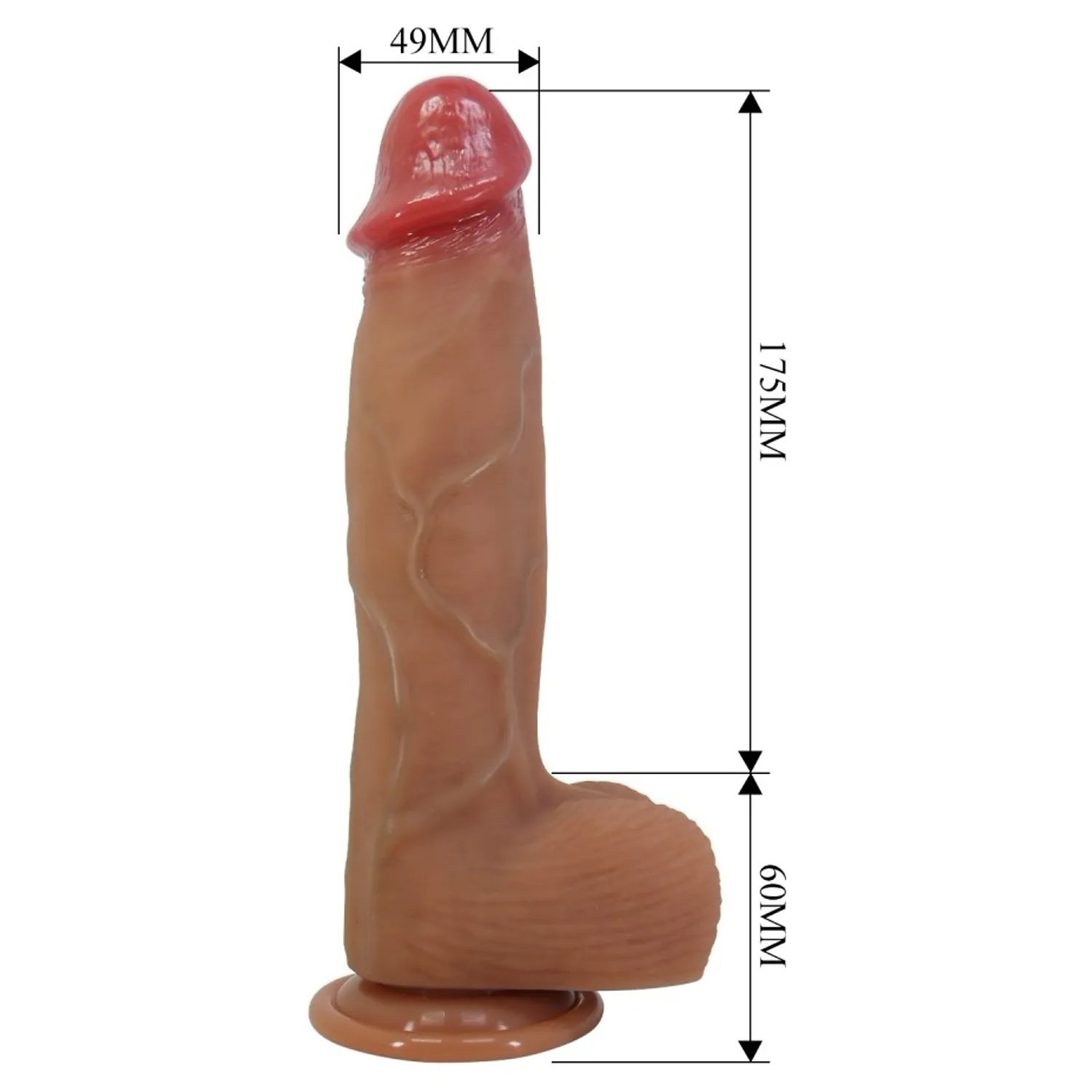 Dildou din silicon cu finisaj catifelat, cap pronunţat și ax venos, realist. Bază cu ventuză compatibilă cu hamuri pentru folosire hands-free. Se curăță ușor cu apă caldă și soluție deosebită pentru jucării.