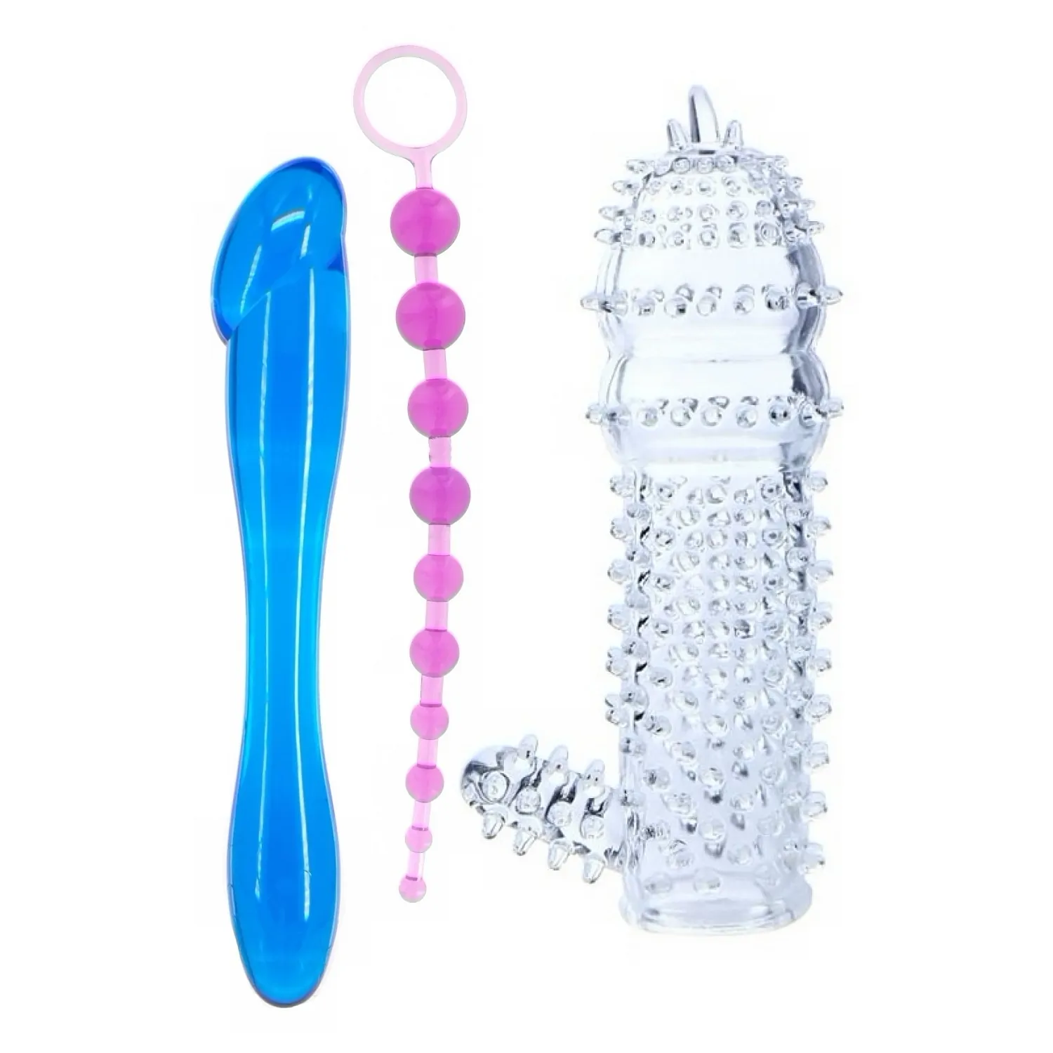 Un kit realizat pentru a amplifica orice întâlnire intimă: începeți cu manșonul texturat pentru a crea o legătură tactilă și stârnire clitoridiană, continuați cu sonda pentru senzaţii interne variabile și folosiţi şiragul de bile pentru inserări controlate și mărirea treptată a intensității.