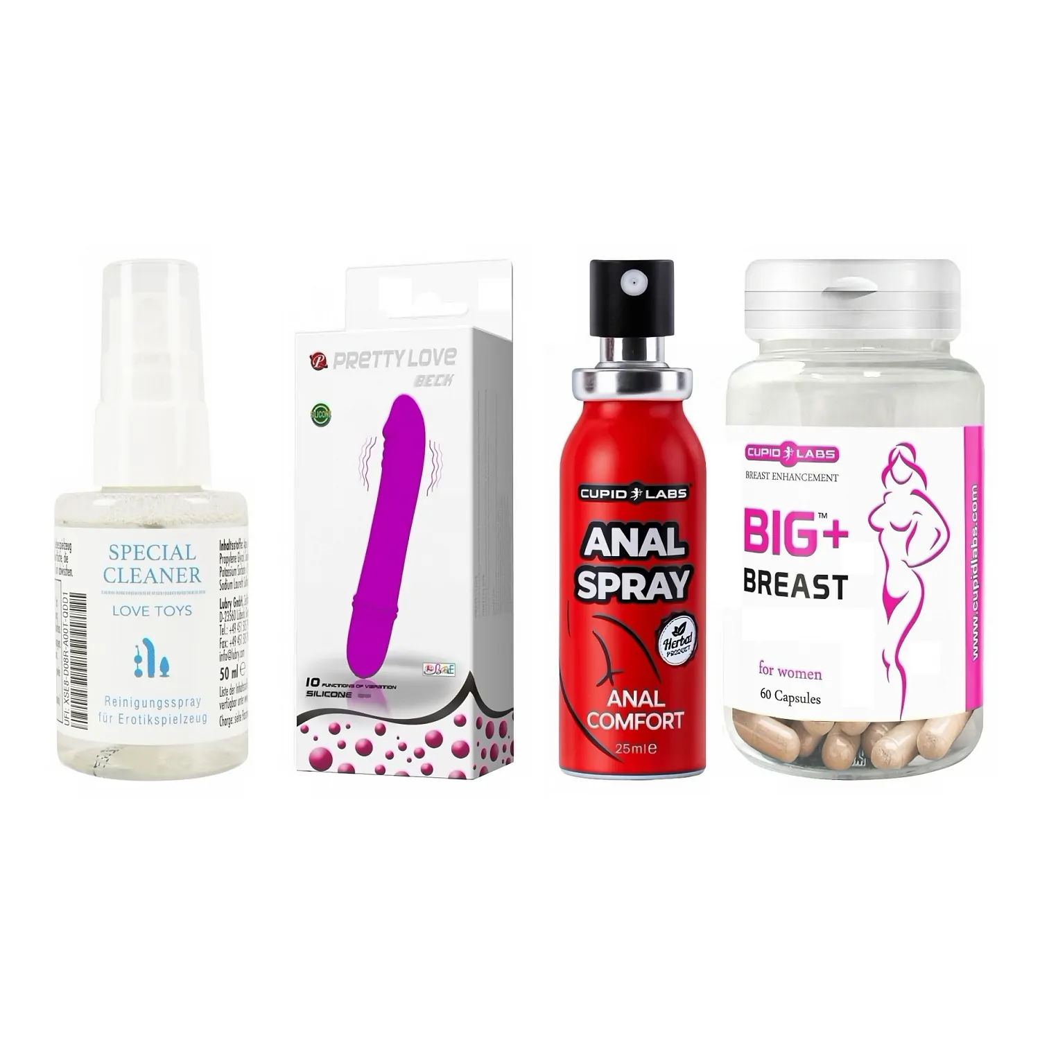 Cum se folosesc împreună: începe prin igienizarea jucăriilor cu spray-ul special, utilizează pulverizatorul desensibilizant punctual, așteaptă câteva minute pentru adaptare și apoi lasă vibratorul să conducă stimularea. Pastilele susțin, pe termen, aspectul și fermitatea sânilor, sporind încrederea în propriul corp și intensificând satisfacția în timpul jocului intim.