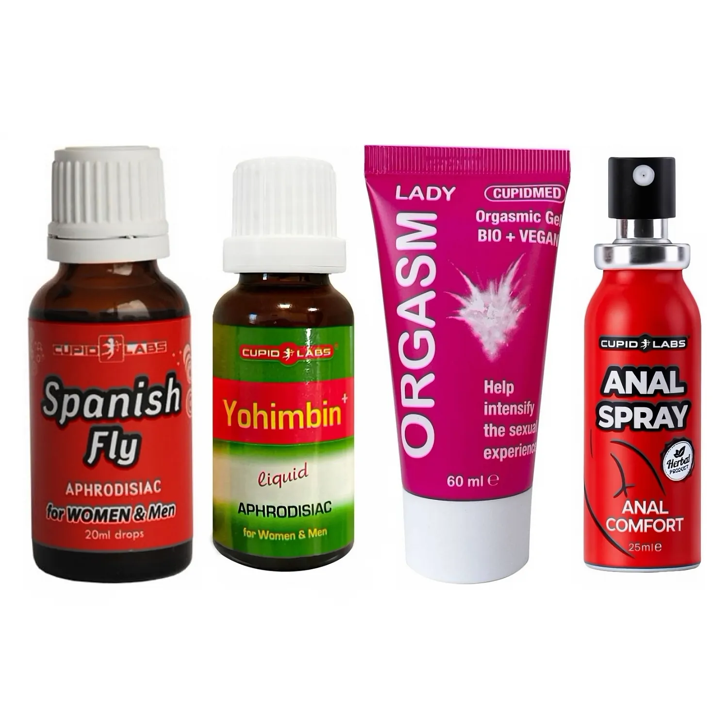 - Picăturile Spanish Fly 20 ml: un afrodiziac pe bază de plante, adresat să trezească dorinţa şi să accentueze senzaţiile. Se integrează uşor în ritualul premergător actului intim.