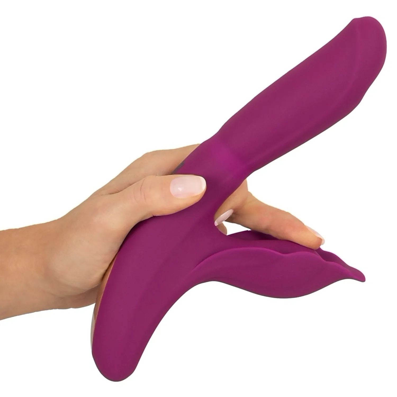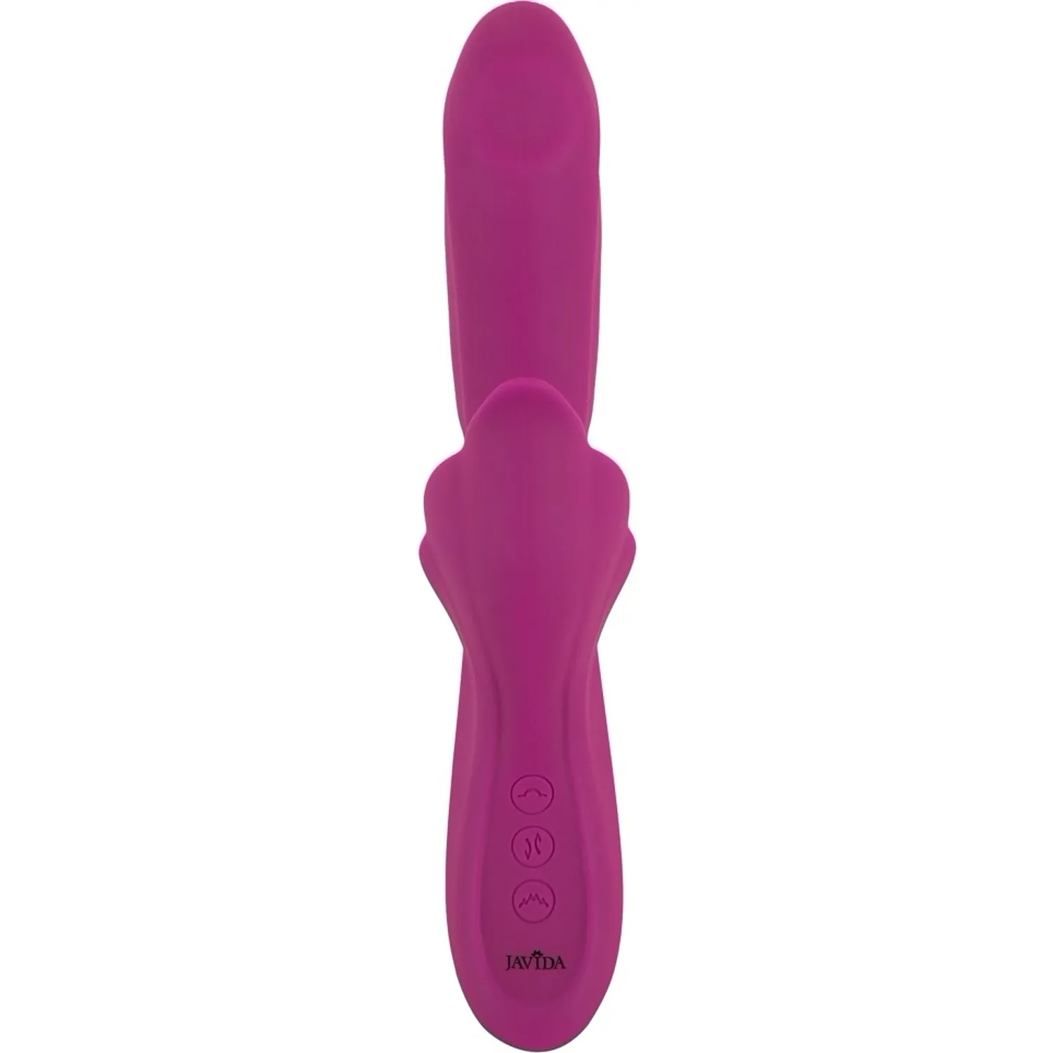 Stimulator dual JAVIDA cu 3 motoare: 7 trepte de împingere, 5 feluri de pulsații, 10 moduri de vibrație și încălzire rapidă. Silicon catifelat + ABS, cu acumulator USB, elastic și silențios. Controale separate pentru combinații personalizate.