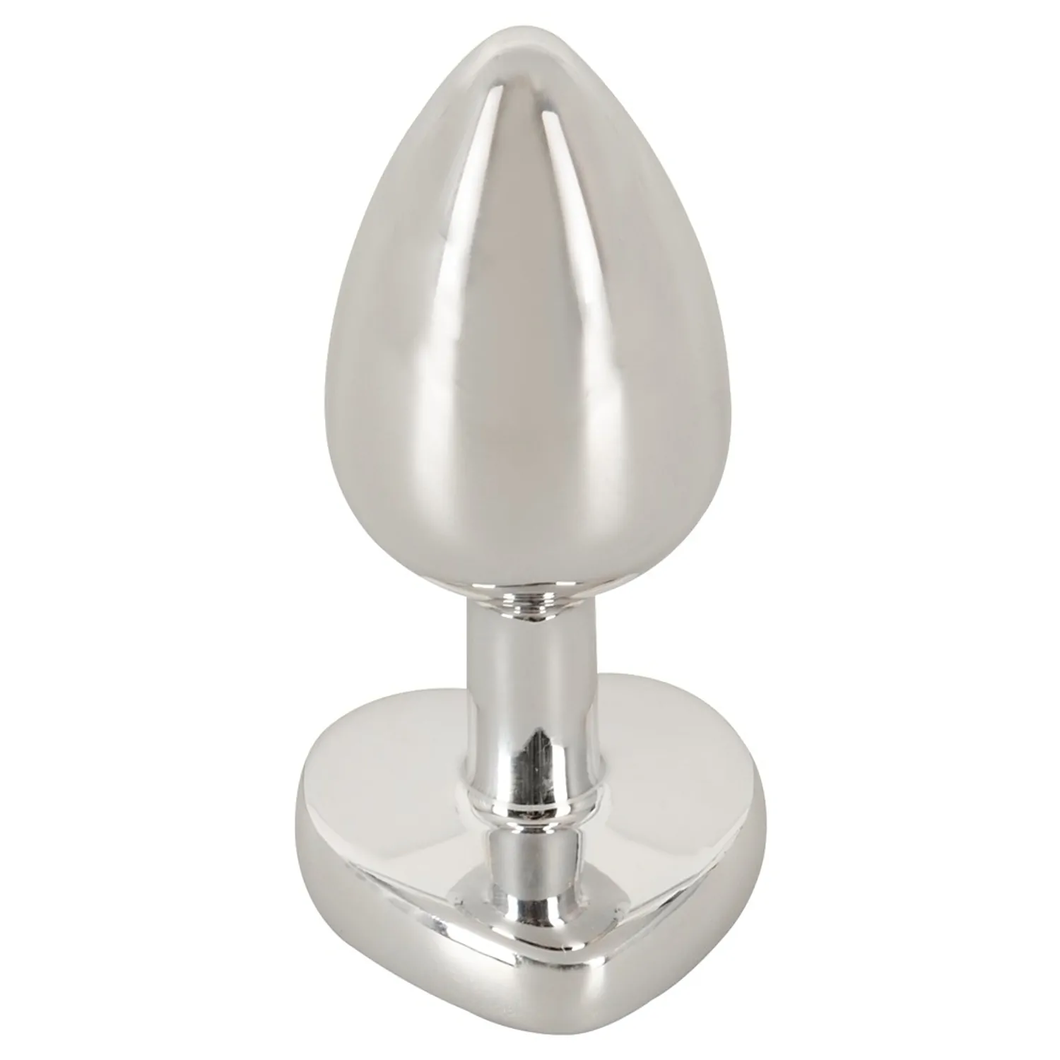 Plug anal metalic Magic Shiver, 7 cm (inserabil 6 cm), diametru max. 2.7 cm, greutate 51 g. Estetică conic cu bijuterie în formă de inimă și regiune netedă; poate fi încălzit sau răcit. Aluminiu + ABS; facil de curățat.