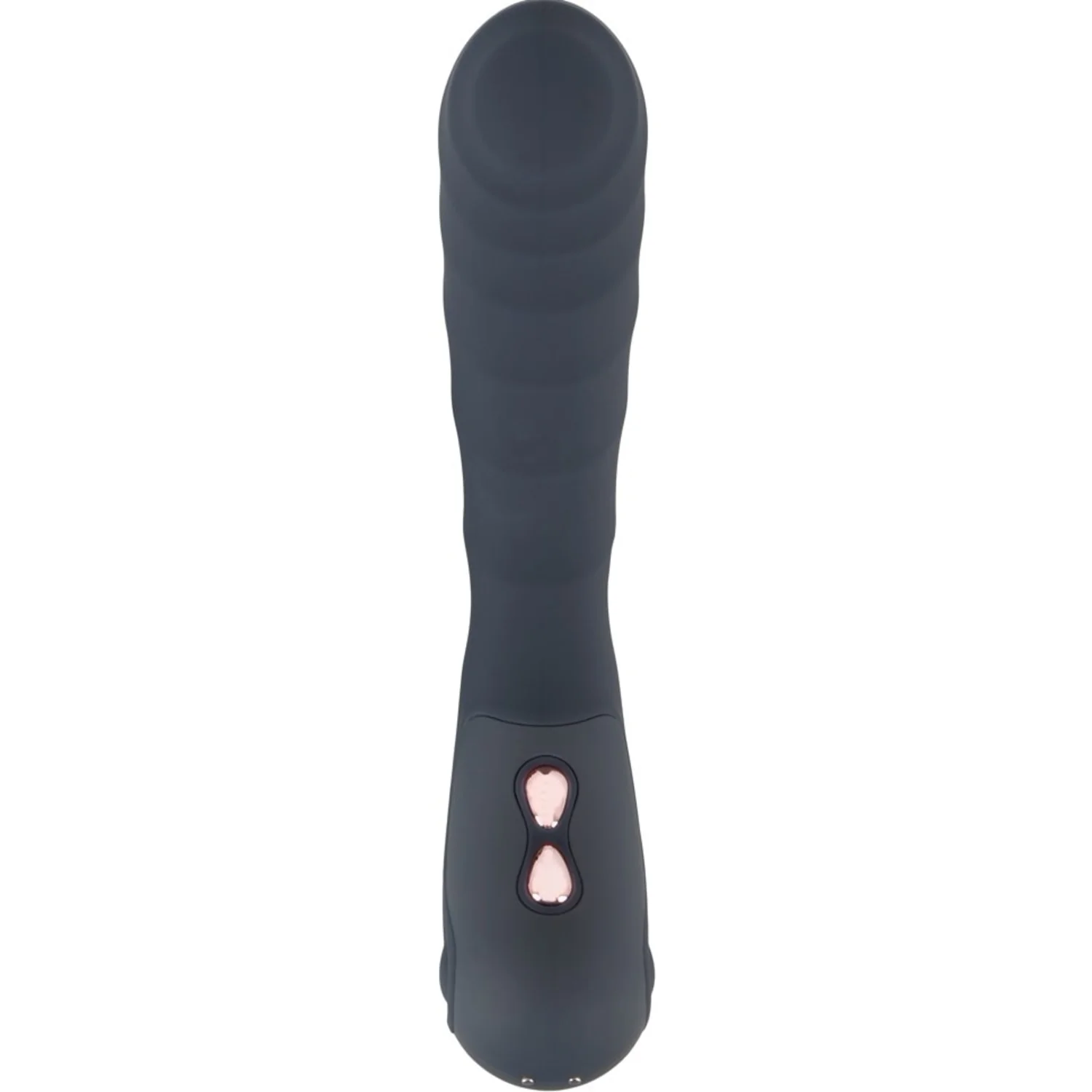 Vibrator punct G arcuit cu cap canelat și 10 moduri de vibrație. Suprafață Soft Touch, flexibilitate moderată, cu acumulator (USB) și rezistent la apă. Lungime totală 19,5 cm, inserabilă 13 cm.