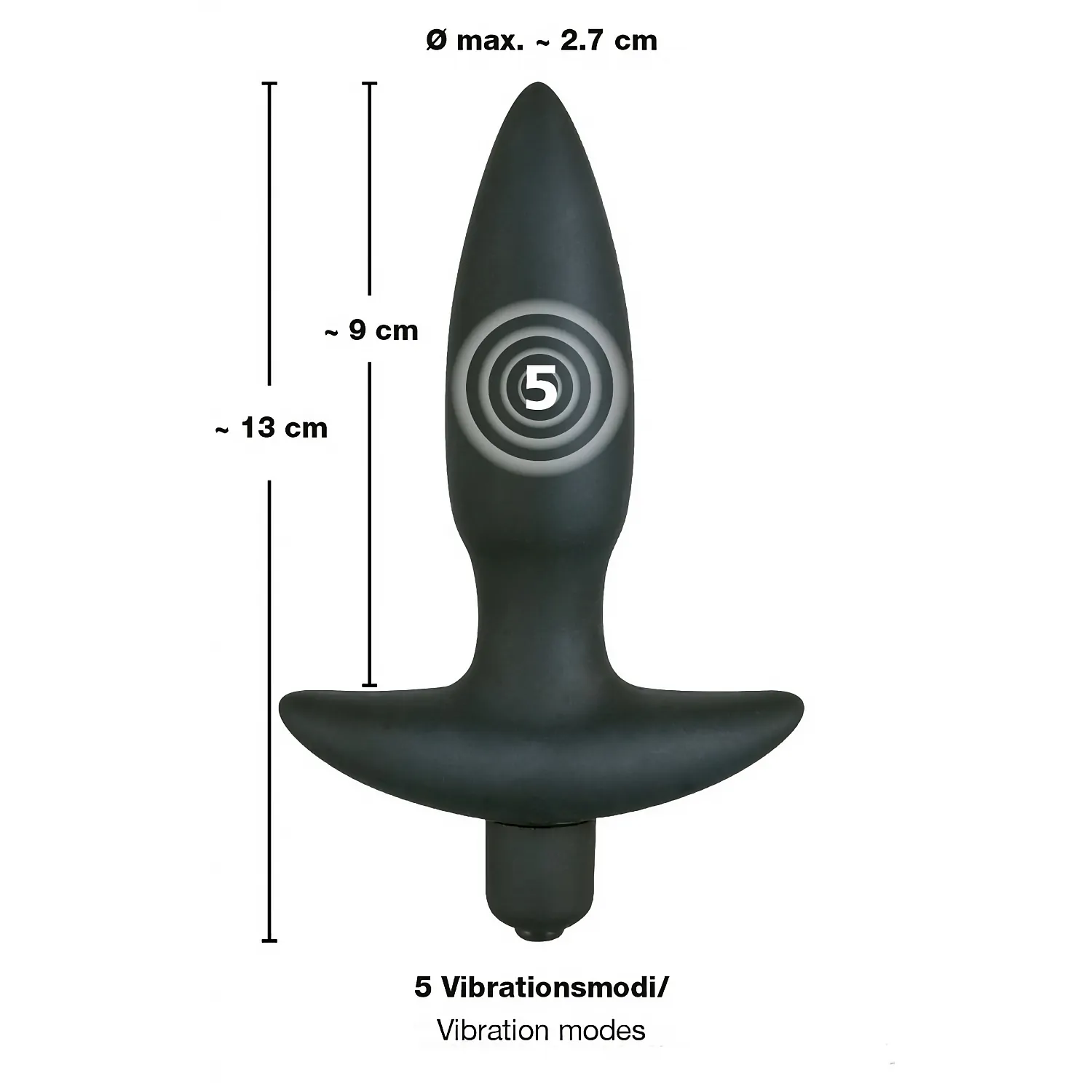 ✔Lungime Totală: 13 cm ✔Lungime Inserabilă: 9 cm ✔Diametru: 1.9-2.7 cm ✔Culoare: Negru ✔Material: Silicon Fără Ftalați (conform REACH) ✔Import: Germania ✔Brand:You2Toys