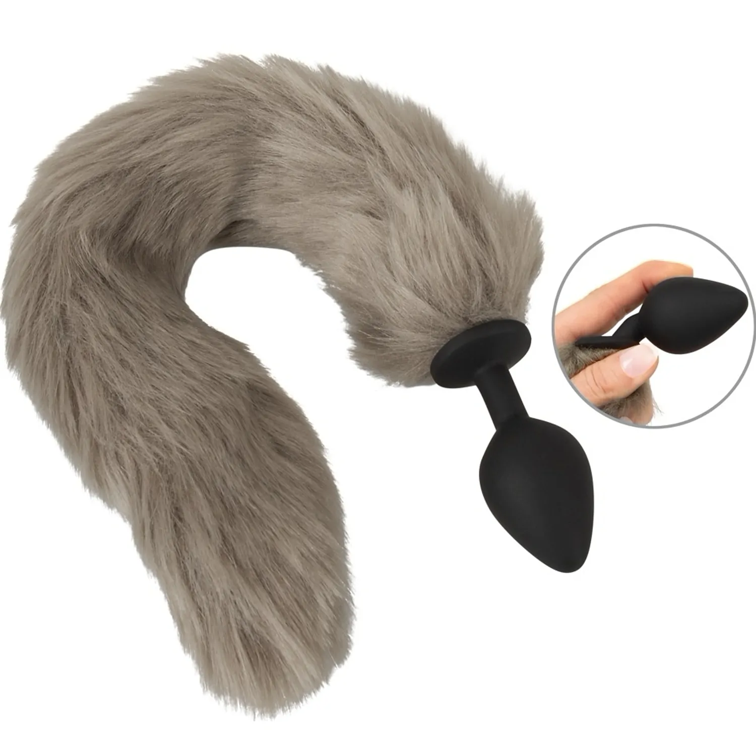 Beneficii și caracteristici: - Coada din blană sintetică gri, moale la atingere - Plug conic din silicon flexibil pentru inserare facilă - Stopper larg pentru siguranță în utilizare - Materiale compatibile cu pielea: silicon, acrilic, poliester - Extindere întreagă 45 cm; parte inserabilă 7.2 cm; diametru mare 3.5 cm - Greutate redusă: 81 g, ușor de purtat și manevrat