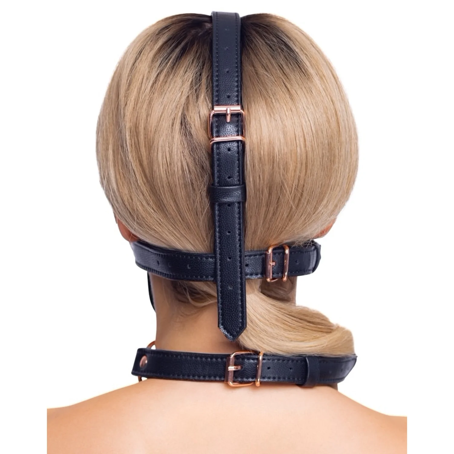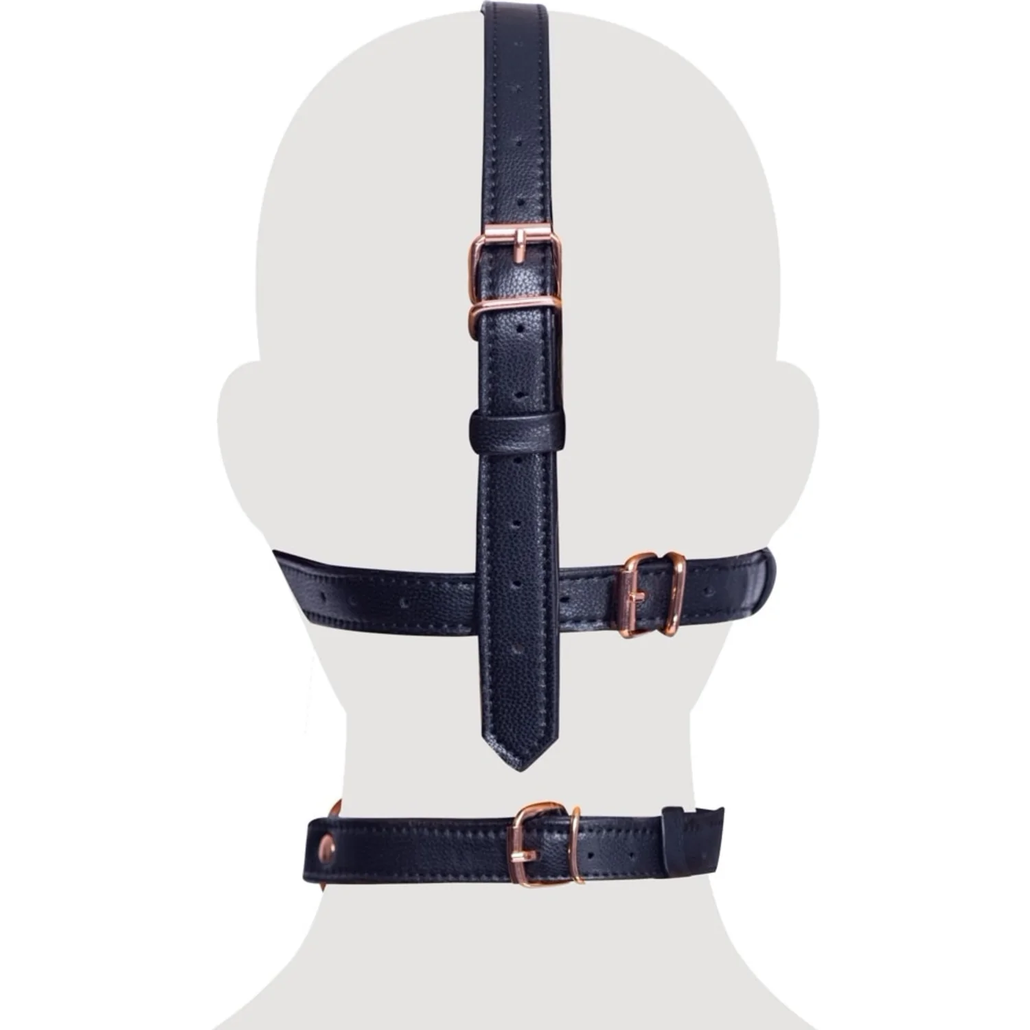 Caracteristici și beneficii: - Ajustare ușoară cu catarame reglabile pentru potrivire personalizată - Bila orală din silicon, diametru Ø4 cm, rezistentă și igienică - Material principal: poliuretan ecologic cu aspect de piele - Elemente metalice de alură roz auriu pentru un finisaj elegant - Realizare durabilă, facil de întreținut