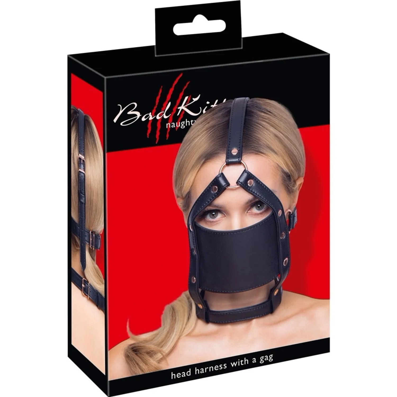 Hamul Bad Kitty, ajustabil, cu bilă din silicon Ø4 cm și alură piele închis la culoare cu accente roz auriu. Catarame reglabile pentru o potrivire strânsă. Material: poliuretan ecologic și metal rezistent.