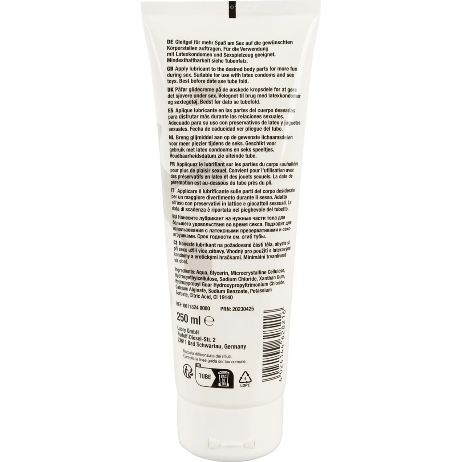 Formula: Pe bază de apă, vegană și fără ulei, non‑grasă — se curăță simplu și este compatibilă cu prezervative din cauciuc și majoritatea jucăriilor intime.