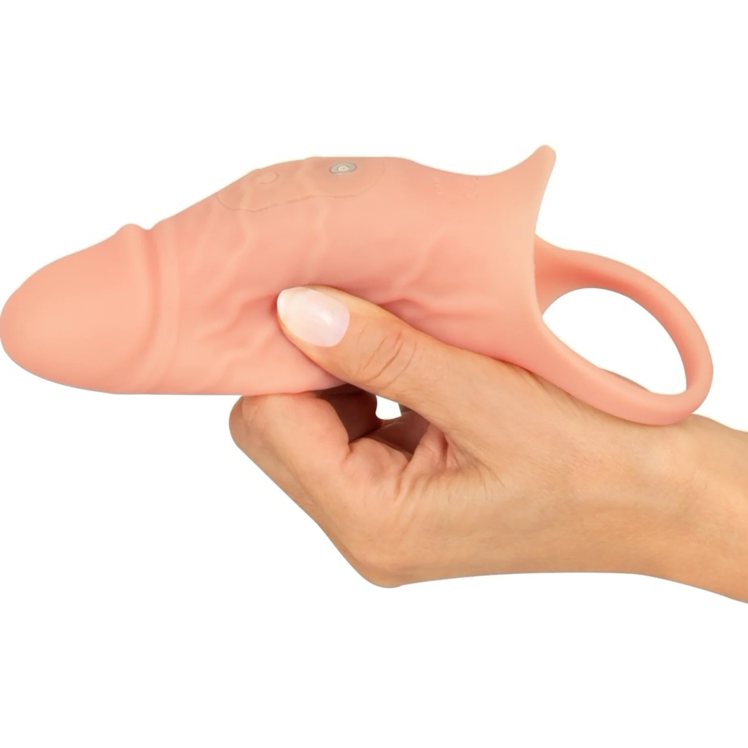 RealSleeve Close de la Realistixxx — manșon din silicon catifelat, reîncărcabil, cu 10 moduri de vibrație. Confort adaptabil, inel elastic pentru prindere sigură și design realist. 18 cm lungime, cablu USB inclus.