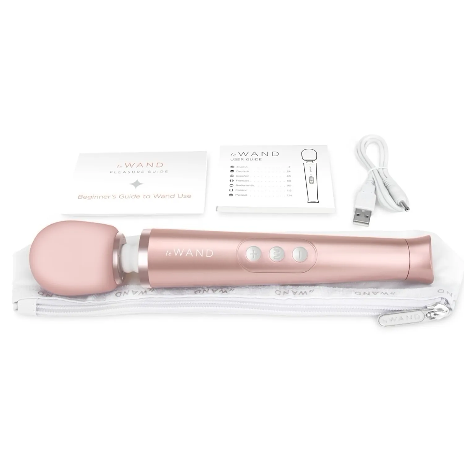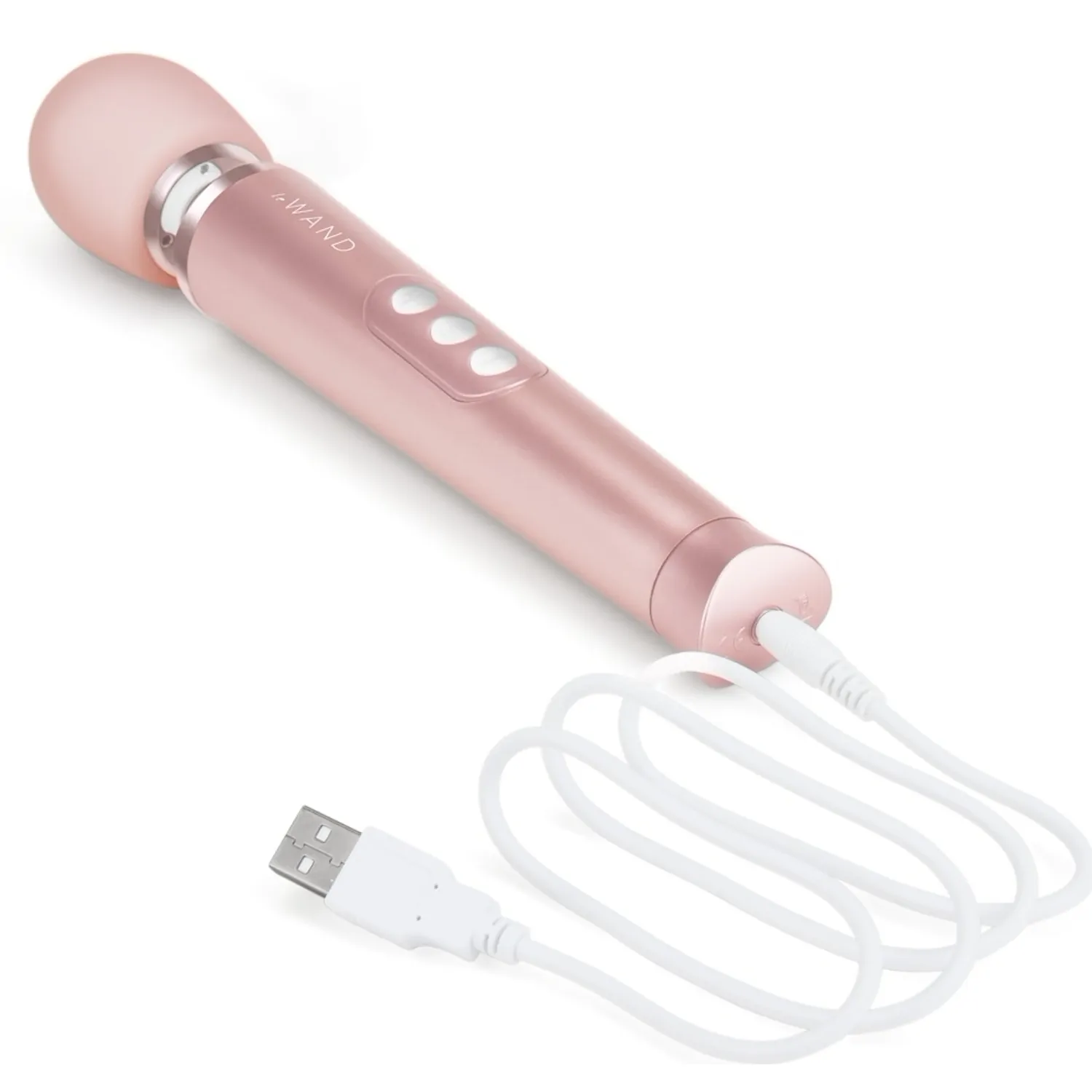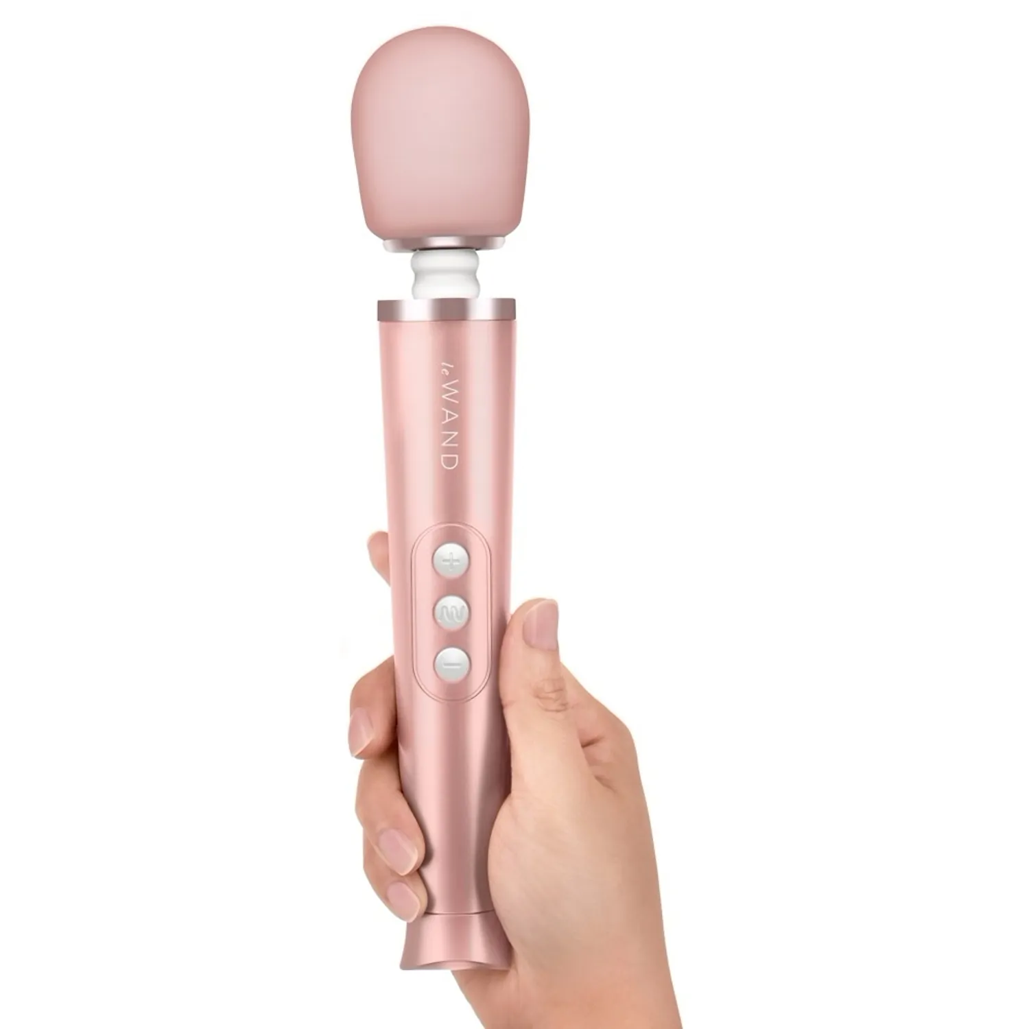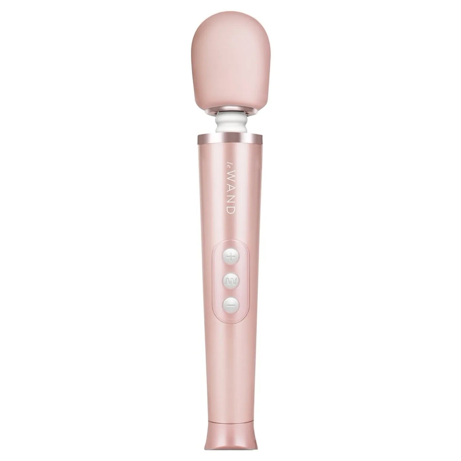 le Wand Petite — dispozitiv compact, reîncărcabil, cu gât elastic și cap rotund Ø4.7 cm. Acordă 6 chipuri de vibrație în 10 viteze, blocare pentru călătorii și husă de depozitare. Adecvat pentru relaxare rapidă și portabilitate.