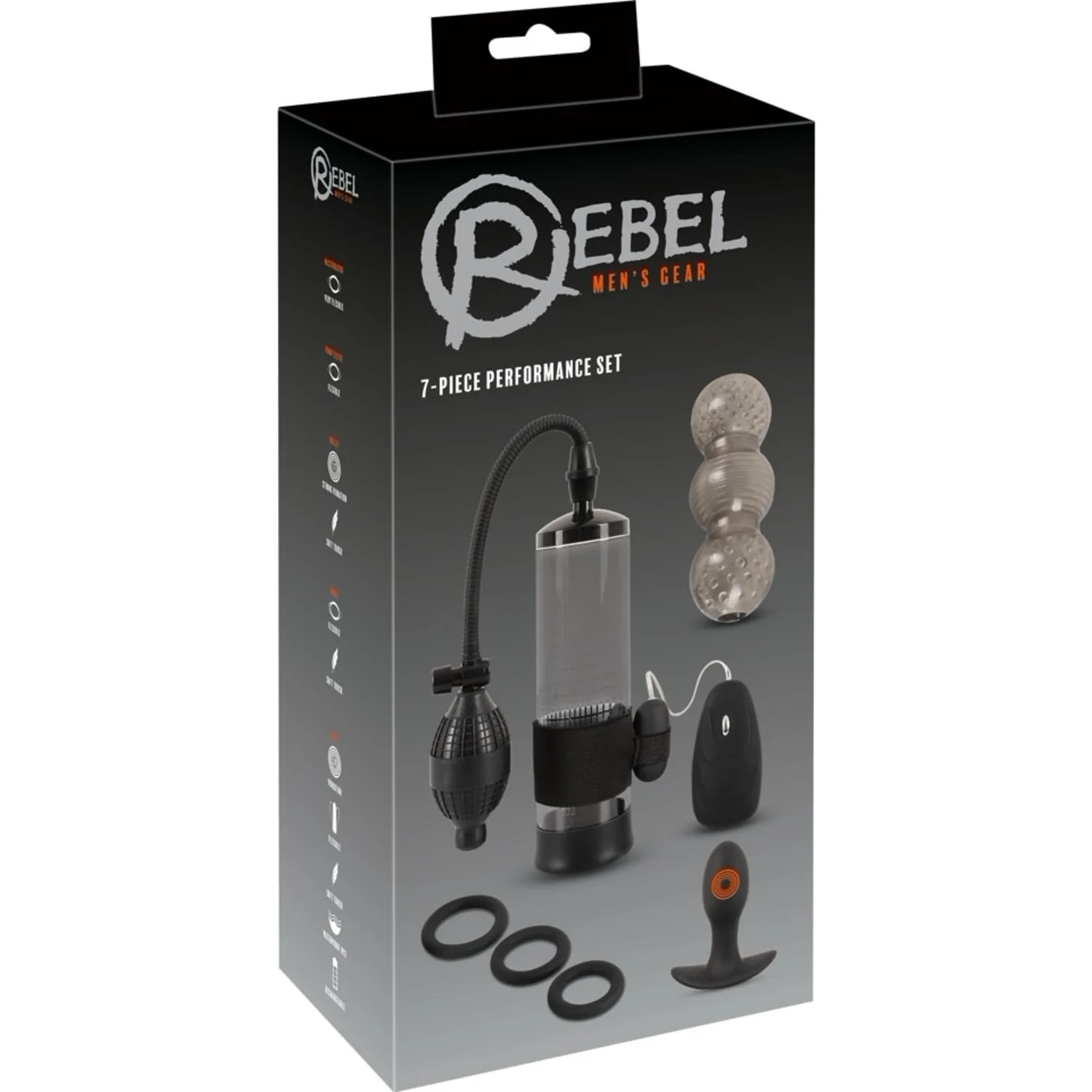 Setul Rebel 7-în-1 oferă un pachet perfect pentru antrenament și varietate în stimulare, conceput pentru control și ajustare precisă.